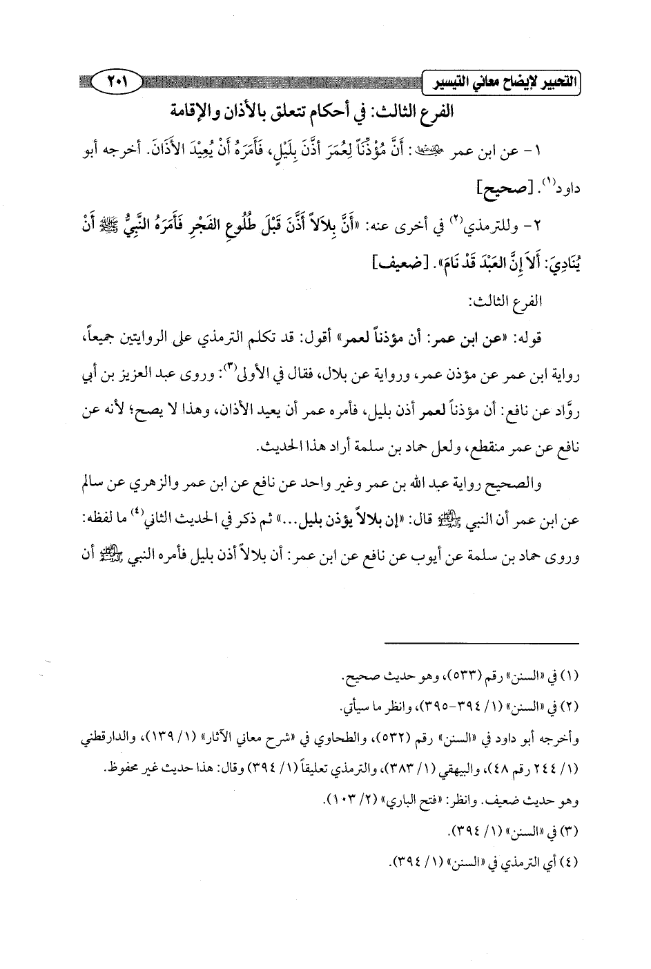 1 - عن ابن عمر - رضي الله عنهما -: أَنَّ مُؤْذَّنَاً لِعُمَرَ أذَّنَ بِلَيْلٍ، فَأَمَرَهُ أَنْ يُعِيْدَ الأَذَانَ. أخرجه أبو داود (¬1). [صحيح]