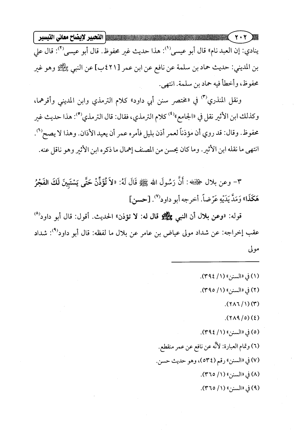 ونقل المنذري (¬3) في "مختصر سنن أبي داود" كلام الترمذي وابن المديني وأقرهما، وكذلك ابن الأثير نقل في "الجامع" (¬4) كلام الترمذي، فقال: قال الترمذي (¬5): هذا حديث غير محفوظ. وقال: قد روي أن مؤذناً لعمر أذن بليل فأمره عمر أن يعيد الأذان. وهذا لا يصح (¬6). انتهى ما نقله ابن الأثير. وما كان يحسن من المصنف إهمال ما ذكره ابن الأثير وهو ناقل عنه.