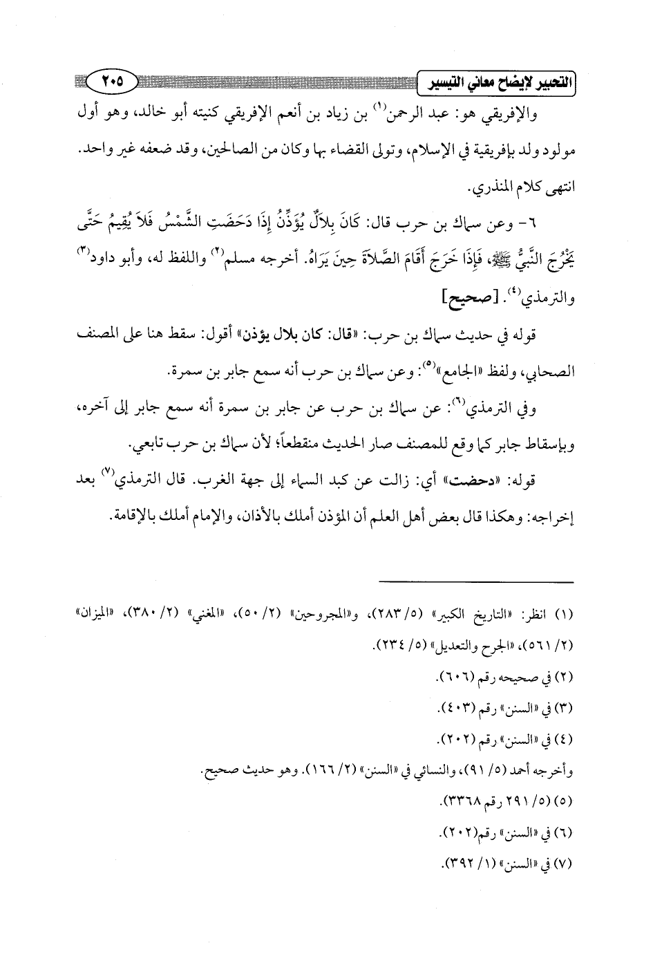 قوله في حديث سماك بن حرب: "قال: كان بلال يؤذن" أقول: سقط هنا على المصنف الصحابي، ولفظ "الجامع" (¬5): وعن سماك بن حرب أنه سمع جابر بن سمرة.