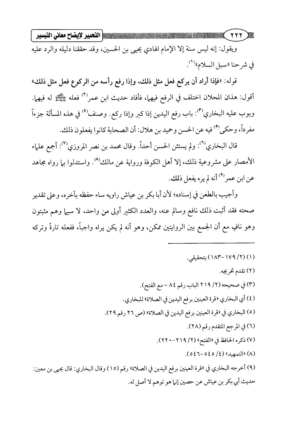 (¬9) أخرجه البخاري في "قرة العينين برفع اليدين في الصلاة" رقم (15) وقال البخاري: قال يحيى بن معين: حديث أبي بكر بن عياش عن حصين إنما هو توهم لا أصل له.