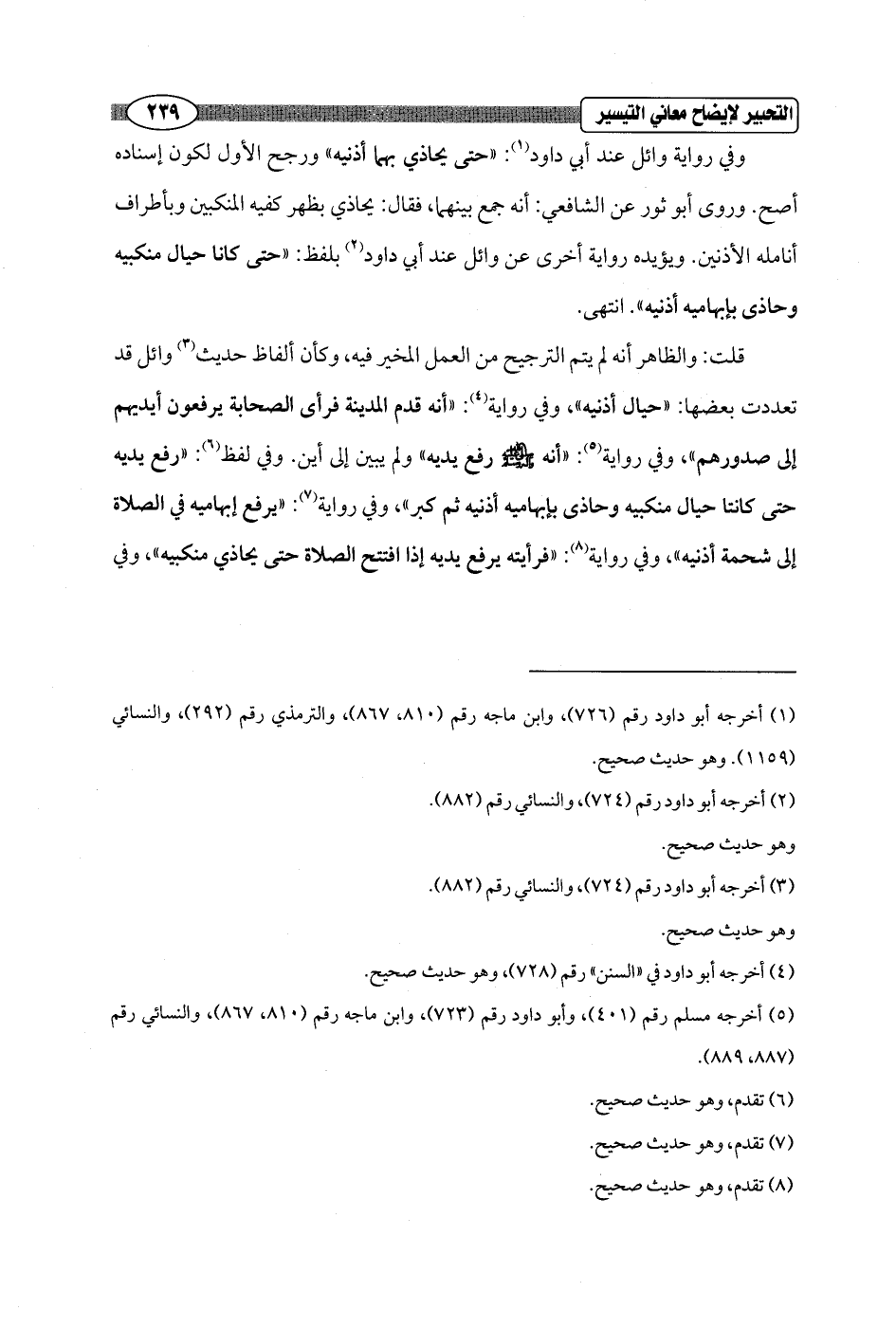 قلت: والظاهر أنه لم يتم الترجيح من العمل المخير فيه، وكأن ألفاظ حديث (¬3) وائل قد تعددت بعضها: "حيال أذنيه"، وفي رواية (¬4): "أنه قدم المدينة فرأى الصحابة يرفعون أيديهم إلى صدورهم"، وفي رواية (¬5): "أنه - صلى الله عليه وسلم - رفع يديه" ولم يبين إلى أين. وفي لفظ (¬6): "رفع يديه حتى كانتا حيال منكبيه وحاذى بإبهاميه أذنيه ثم كبر"، وفي رواية (¬7): "يرفع إبهاميه في الصلاة إلى شحمة أذنيه"، وفي رواية (¬8): "فرأيته يرفع يديه إذا افتتح الصلاة حتى يحاذي منكبيه"، وفي