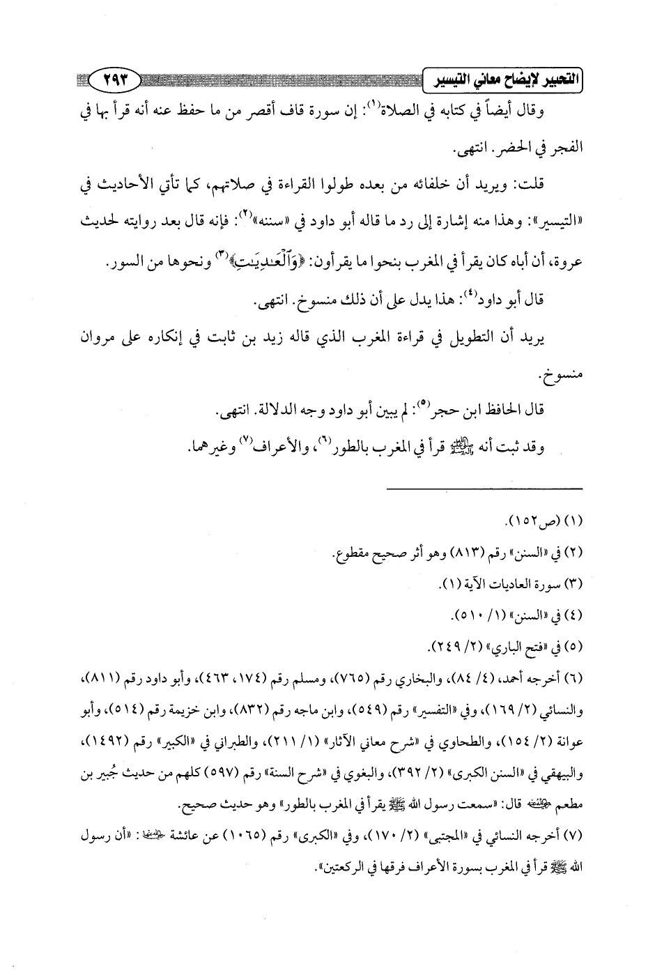 (¬6) أخرجه أحمد، (4/ 84)، والبخاري رقم (765)، ومسلم رقم (174، 463)، وأبو داود رقم (811)، والنسائي (2/ 169)، وفي "التفسير" رقم (549)، وابن ماجه رقم (832)، وابن خزيمة رقم (514)، وأبو عوانة (2/ 154)، والطحاوي في "شرح معاني الآثار" (1/ 211)، والطبراني في "الكبير" رقم (1492)، والبيهقي في "السنن الكبرى" (2/ 392)، والبغوي في "شرح السنة" رقم (597) كلهم من حديث جُبير بن مطعم - رضي الله عنه - قال: "سمعت رسول الله - صلى الله عليه وسلم - يقرأ في المغرب بالطور" وهو حديث صحيح.