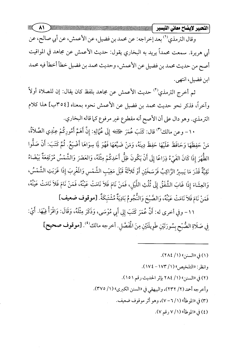 11 - وفي أخرى له: أَنَّ عُمَرَ كَتَبَ إِلِى أَبِي مُوْسَى، وَذَكَرَ مِثْلَهُ، وَقَالَ: وَاقْرَأْ فِيْهَا. أَيْ: فِي صَلَاةِ الصُّبْحِ بِسُورَتَيْنِ طَوِيلَتَيْنِ مِنَ المُفَصَّلِ. أخرجه مالك (¬4). [موقوف صحيح]