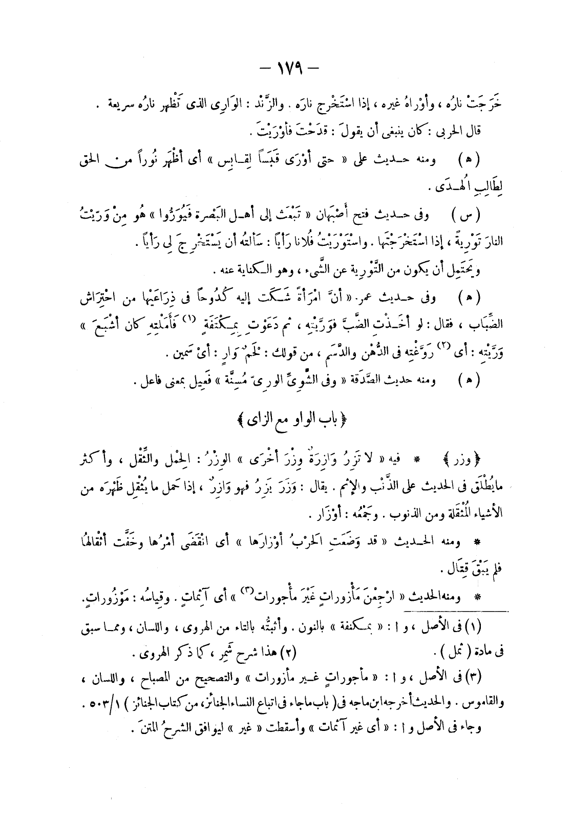 (3) فى الأصل، وا: «مأجورات غير مأزورات» والتصحيح من المصباح، واللسان، والقاموس. والحديث أخرجه ابن ماجه فى (باب ما جاء فى اتباع النساء الجنائز، من كتاب الجنائز 1/ 503. وجاء فى الأصل وا: «أى غير آثمات» وأسقطت «غير» ليوافق الشرح المتن.