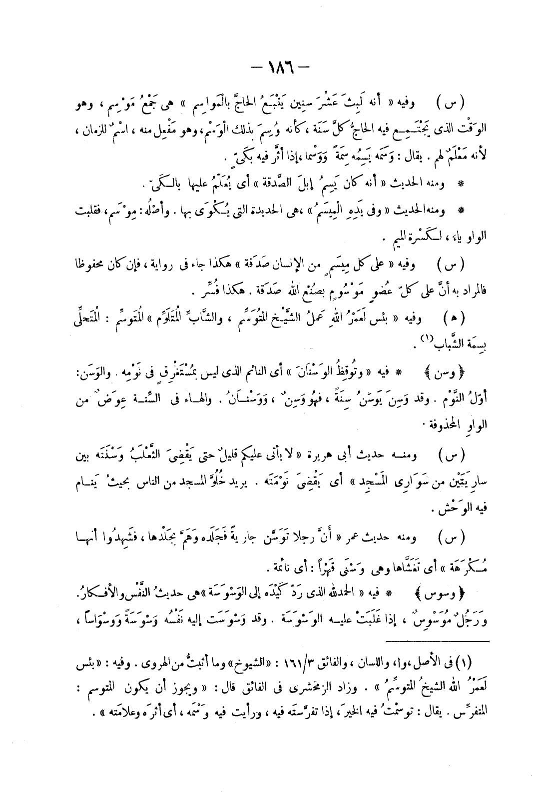 (هـ) وَفِيهِ «بِئْسَ لَعَمْرُ اللَّهِ عَمَلُ الشَّيْخِ الْمُتَوَسِّمِ، وَالشَّابِّ المُتَلَوِّم» الْمُتَوَسِّمُ: المُتَحلِّي بِسمَة الشَّباب «1» .
