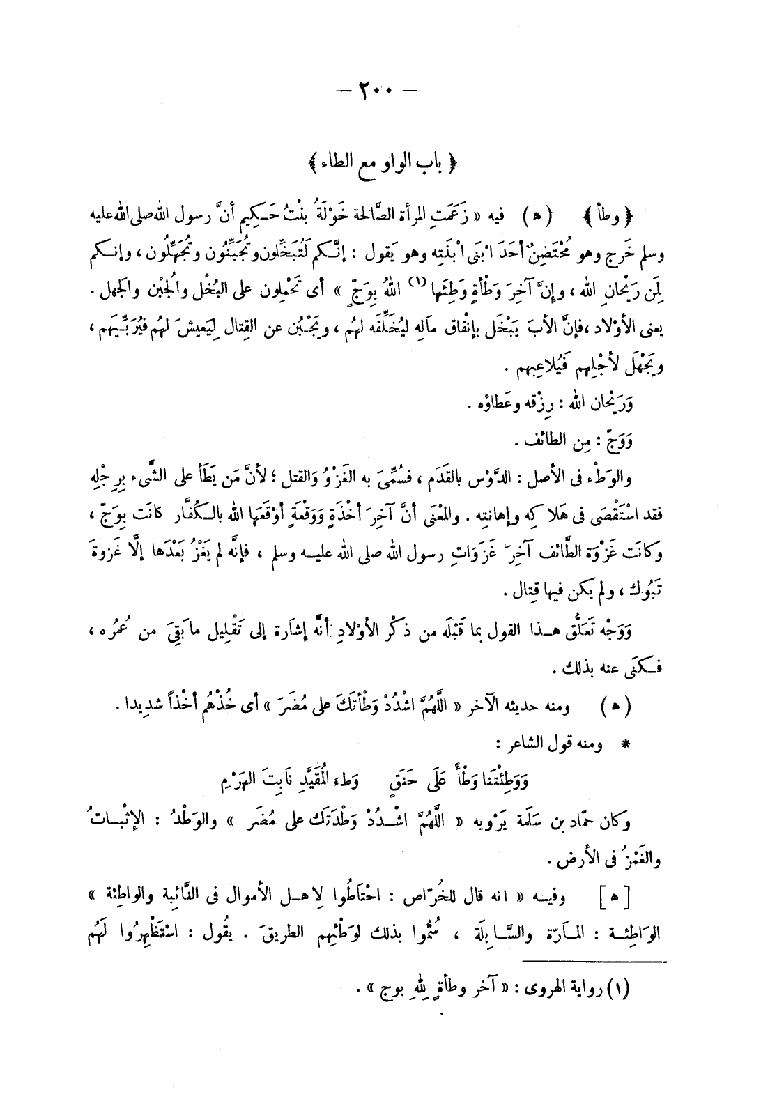 (1) رواية الهروي: «أخر وطأةٍ للَّهِ بوج» .