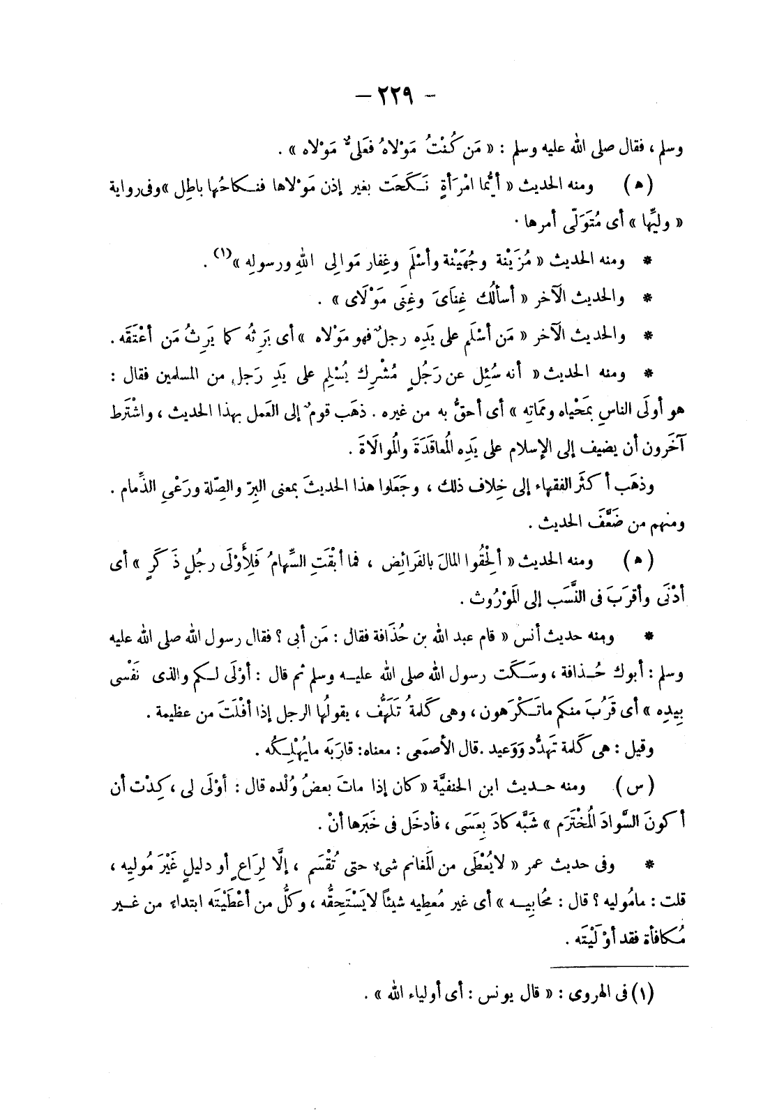 هُوَ أَوْلَى الناسِ بمَحْياه ومماتِه» أَيْ أحقُّ بِهِ مِنْ غَيْرِهِ. ذهَبَ قومٌ إِلَى العَمل بِهَذَا الْحَدِيثِ، واشْتَرط آخَرون أَنْ يُضِيفَ إِلَى الْإِسْلَامِ عَلَى يَدِهِ الْمُعَاقَدَةَ وَالْمُوَالَاةَ.