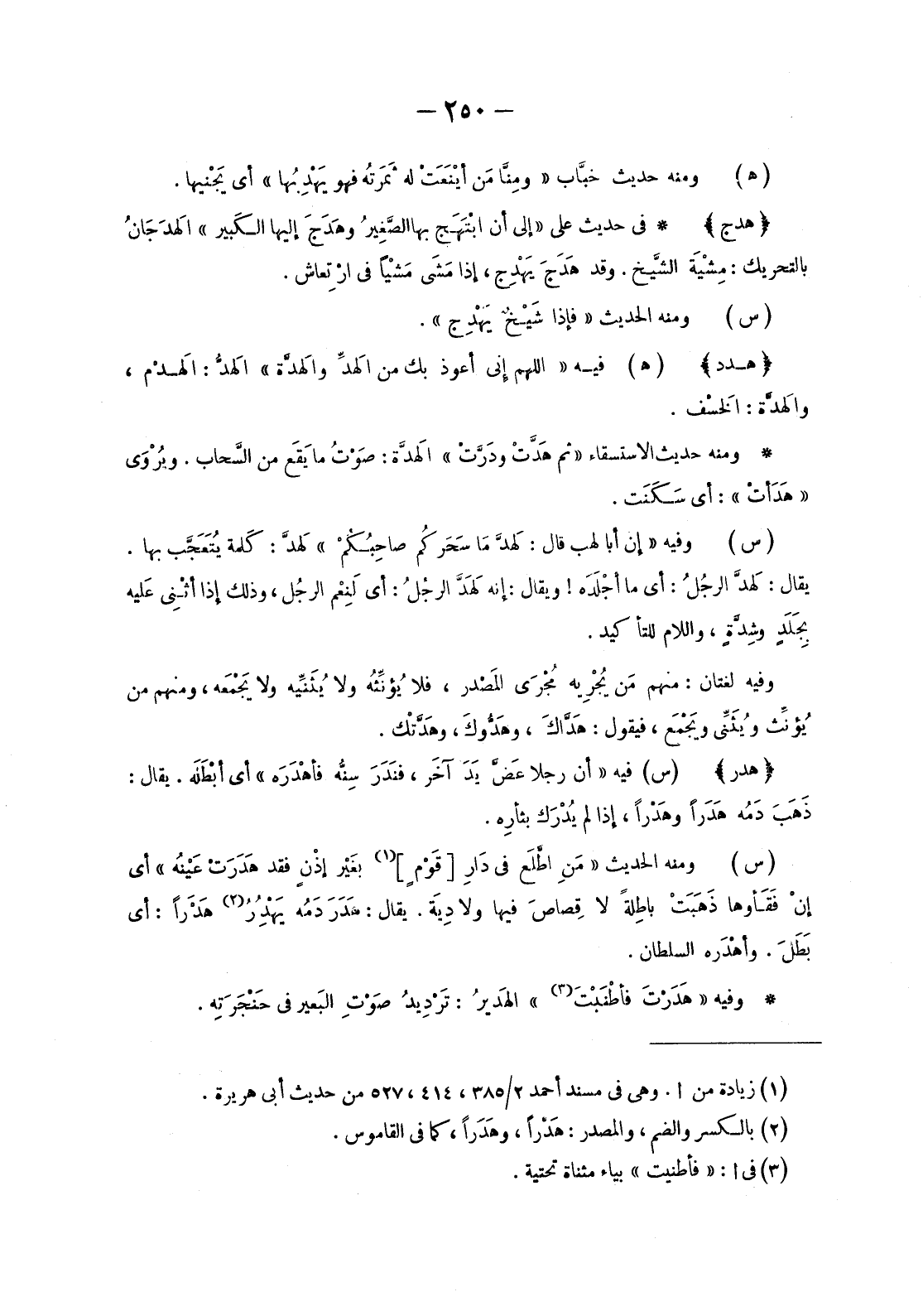 وَفِيهِ «هَدَرْتَ فأطْنَبْتَ «3» » الْهَدِيرُ: تَرْدِيدُ صَوْتِ البَعير في حَنْجَرَتِه.