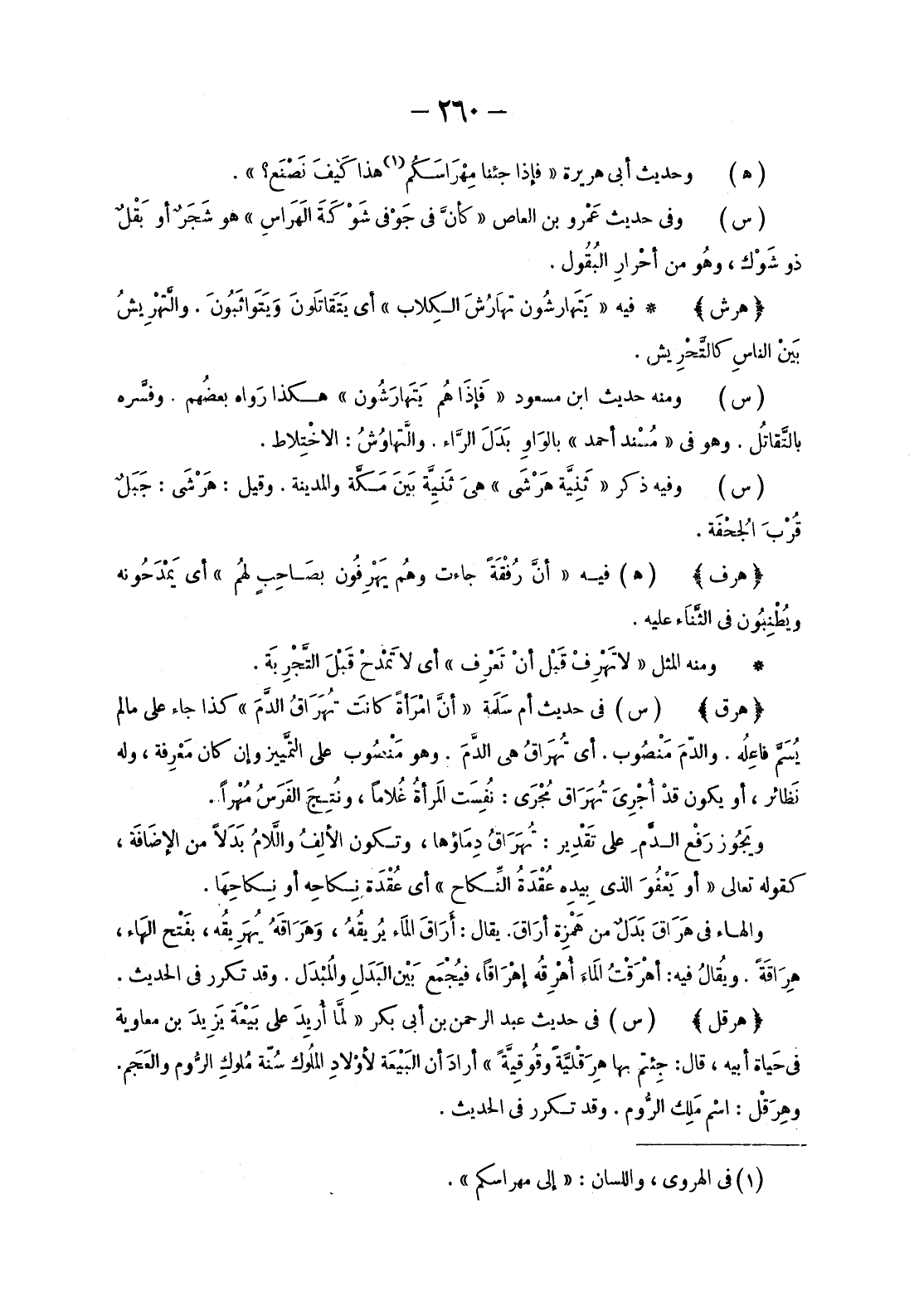 - فِيهِ «يَتَهَارَشُونَ تَهَارُشَ الكِلاب» أَيْ يَتَقَاتَلونَ وَيَتَواثَبُونَ. والتَّهْرِيشُ بَيْن الناسِ كَالتَّحْرِيشِ.