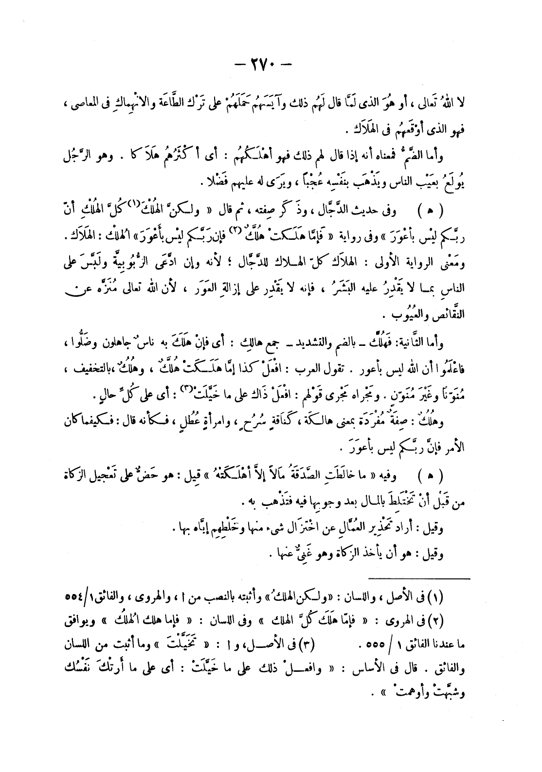 (2) في الهروي: «فإمّا هَلَكَ كُلَّ الهلك» وفي اللسان: «فإما هلك الهُلُك» ويوافق ما عندنا الفائق 1/ 555.