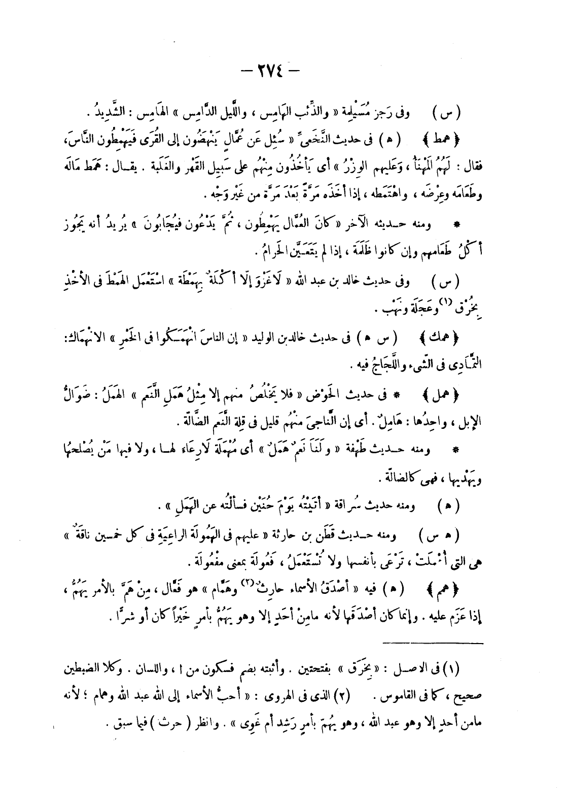 (2) الذي في الهروي: «أحبُّ الأسماء إلى اللَّه عبد الله وهمام؛ لأنه مامن أحدٍ إلا وهو عبد اللَّه، وهو يَهمّ بأمرٍ رَشِد أم غَوِي» . وانظر (حرث) فيما سبق.