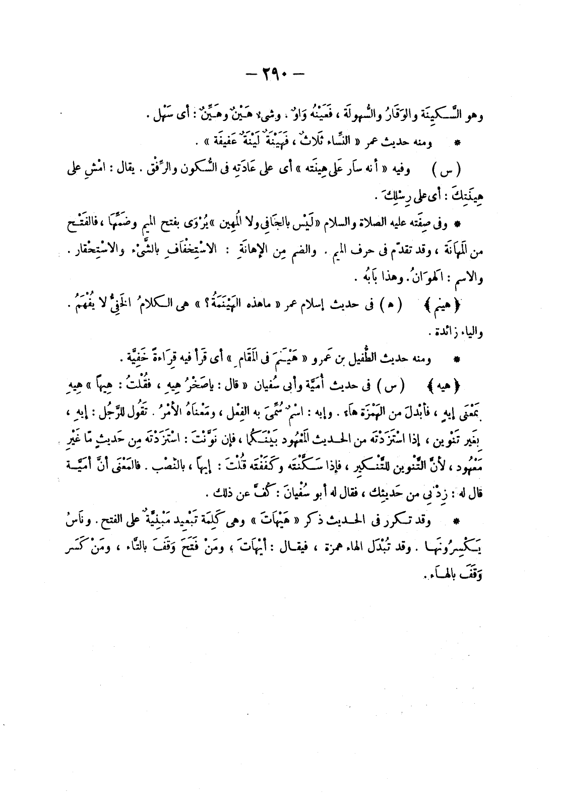 وَمِنْهُ حَدِيثُ عُمَرَ «النِّسَاءُ ثَلَاثٌ، فَهَيْنَةٌ لَيْنَةٌ عَفِيفَةٌ» .