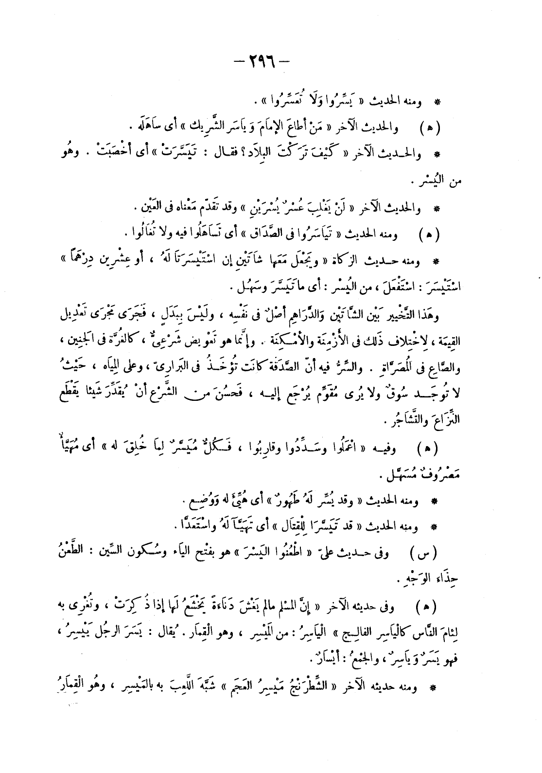 وَمِنْهُ الْحَدِيثُ «يَسِّرُوا وَلاَ تُعَسِّرُوا» .