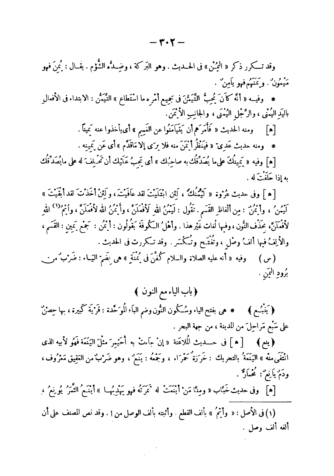 وَقَدْ تَكَرَّرَ ذِكْرُ «الْيُمْنِ» فِي الْحَدِيثِ. وَهُوَ البَركة، وضِدُّه الشُّؤم. يُقَالُ: يُمِنَ فَهُوَ مَيْمُونٌ. ويَمَنَهُمْ فَهُوَ يَامِنٌ.
