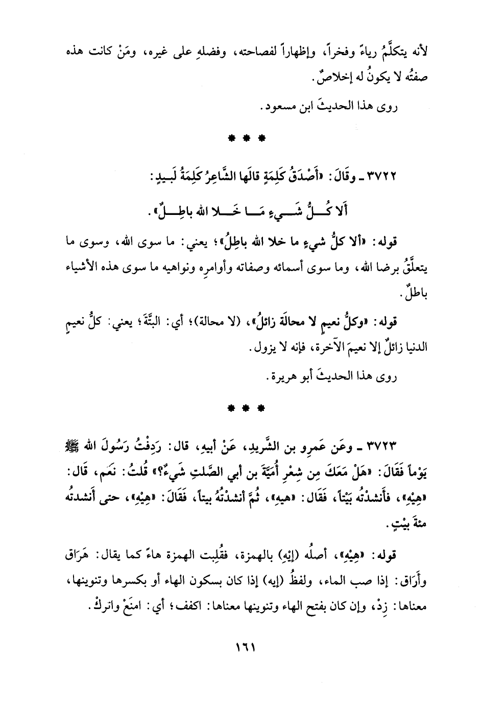 3722 - وقَالَ: "أَصْدَقُ كَلِمَةٍ قالَها الشَّاعِرُ كَلِمَةُ لَبيدٍ: