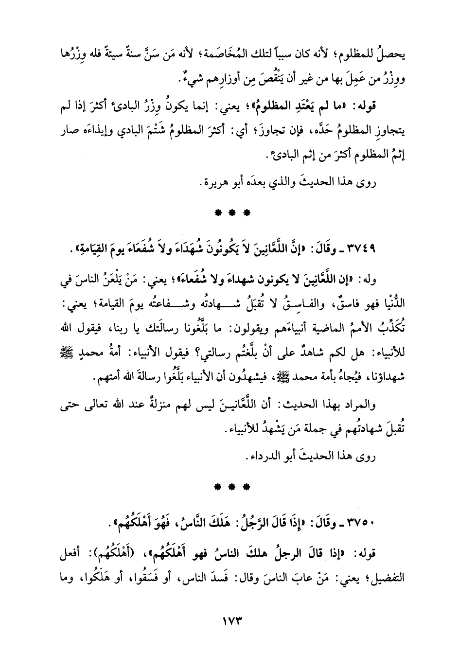 3749 - وقَالَ: "إنَّ اللَّعَّانِينَ لاَ يَكُونُونَ شُهدَاءَ ولاَ شُفَعَاءَ يومَ القِيَامةِ".