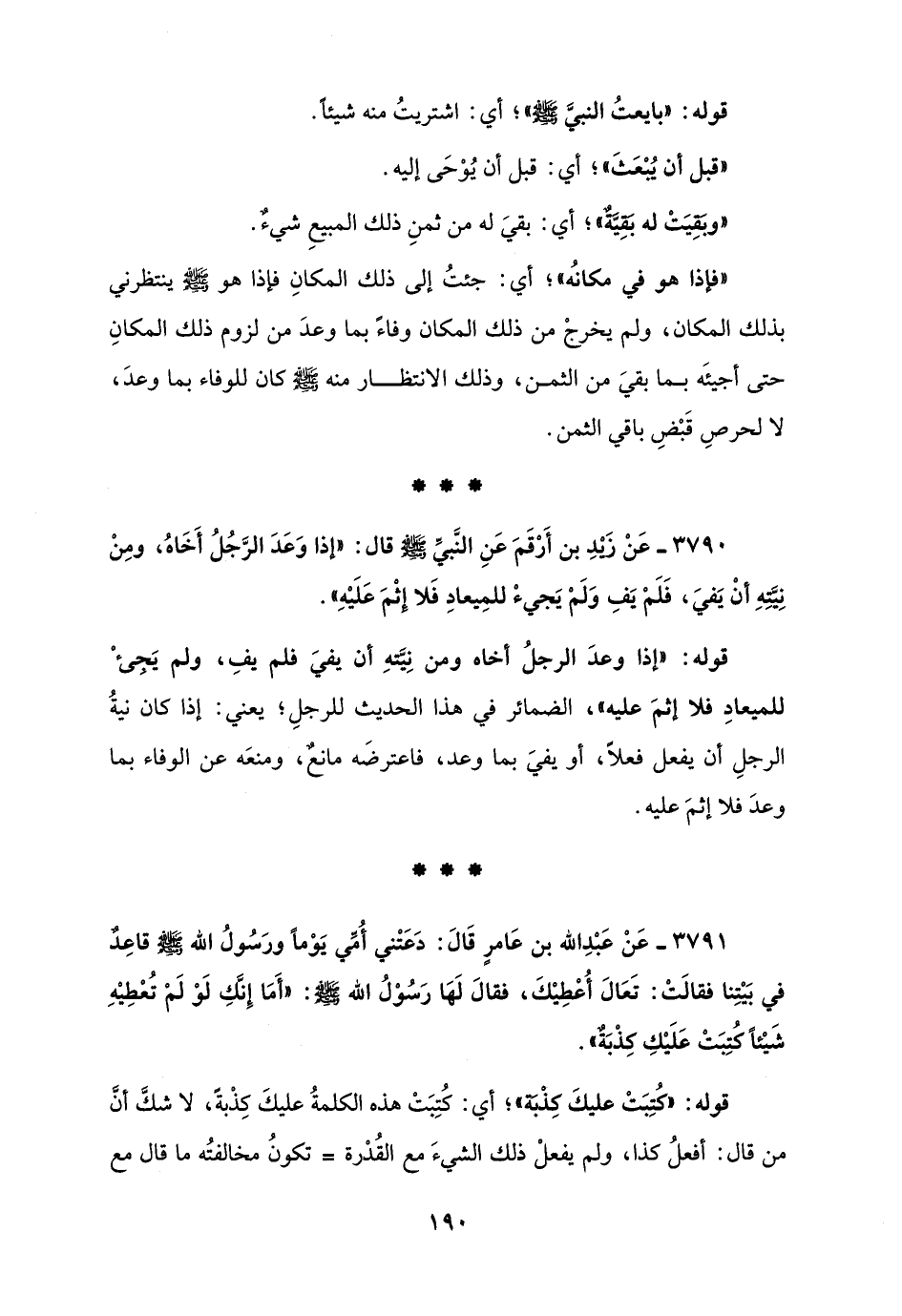 3790 - عَنْ زيدِ بن أَرْقَمَ عَنِ النَّبيِّ - صلى الله عليه وسلم - قال: "إذا وَعَدَ الرَّجُلُ أَخَاهُ، ومِنْ نِيَّتِهِ أنْ يَفيَ، فَلَمْ يَفِ وَلَمْ يَجيءْ للمِيعادِ فَلا إِثْمَ عَلَيْهِ".