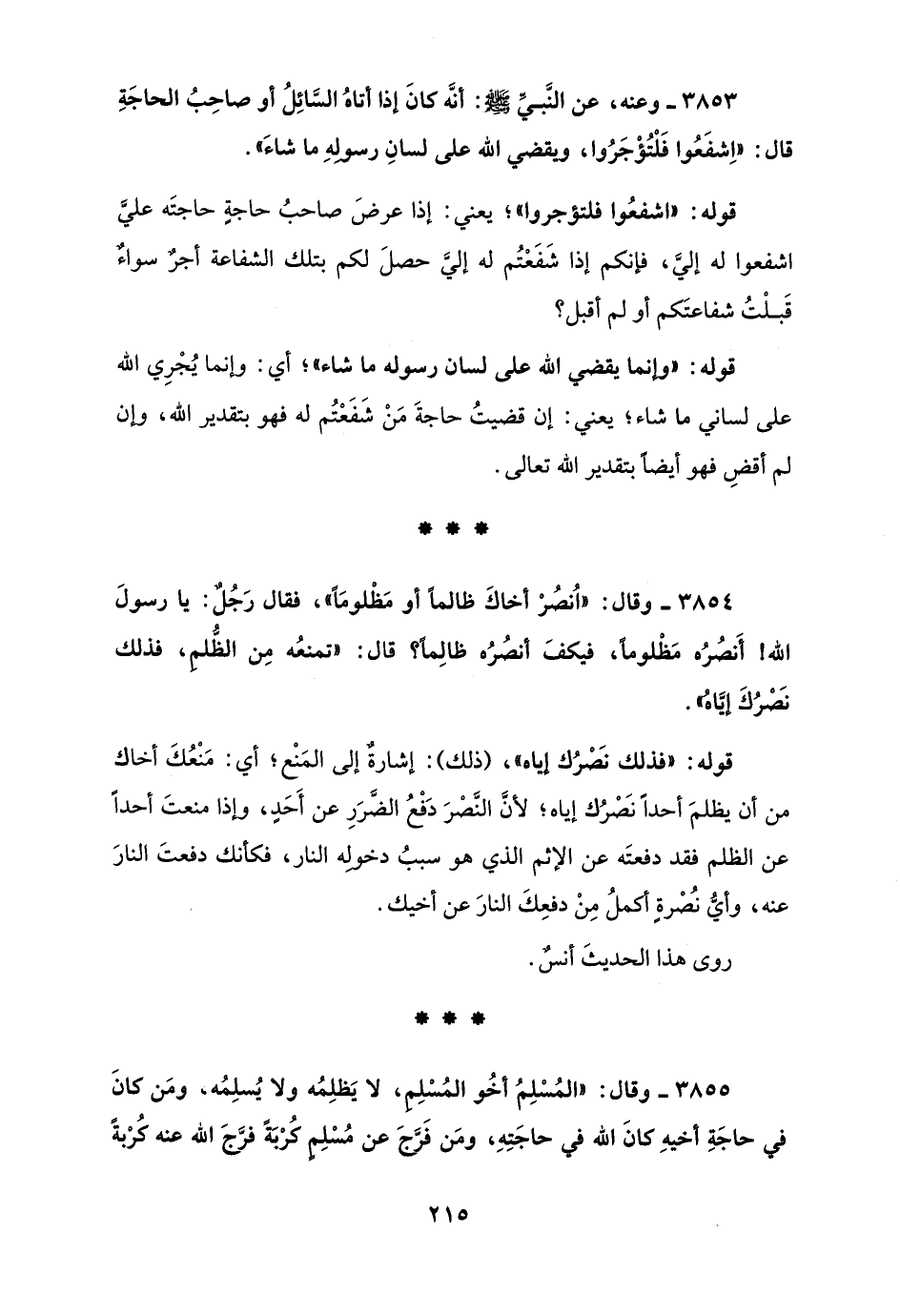3855 - وقال: "المُسْلِمُ أخُو المُسْلِم، لا يَظلِمُه ولا يُسلِمُه، ومَن كانَ في حاجَةِ أخيهِ كانَ الله في حاجَتِهِ، ومَن فَرَّجَ عن مُسْلِمٍ كُرْبَةً فرَّجَ الله عنه كُرْبةً
