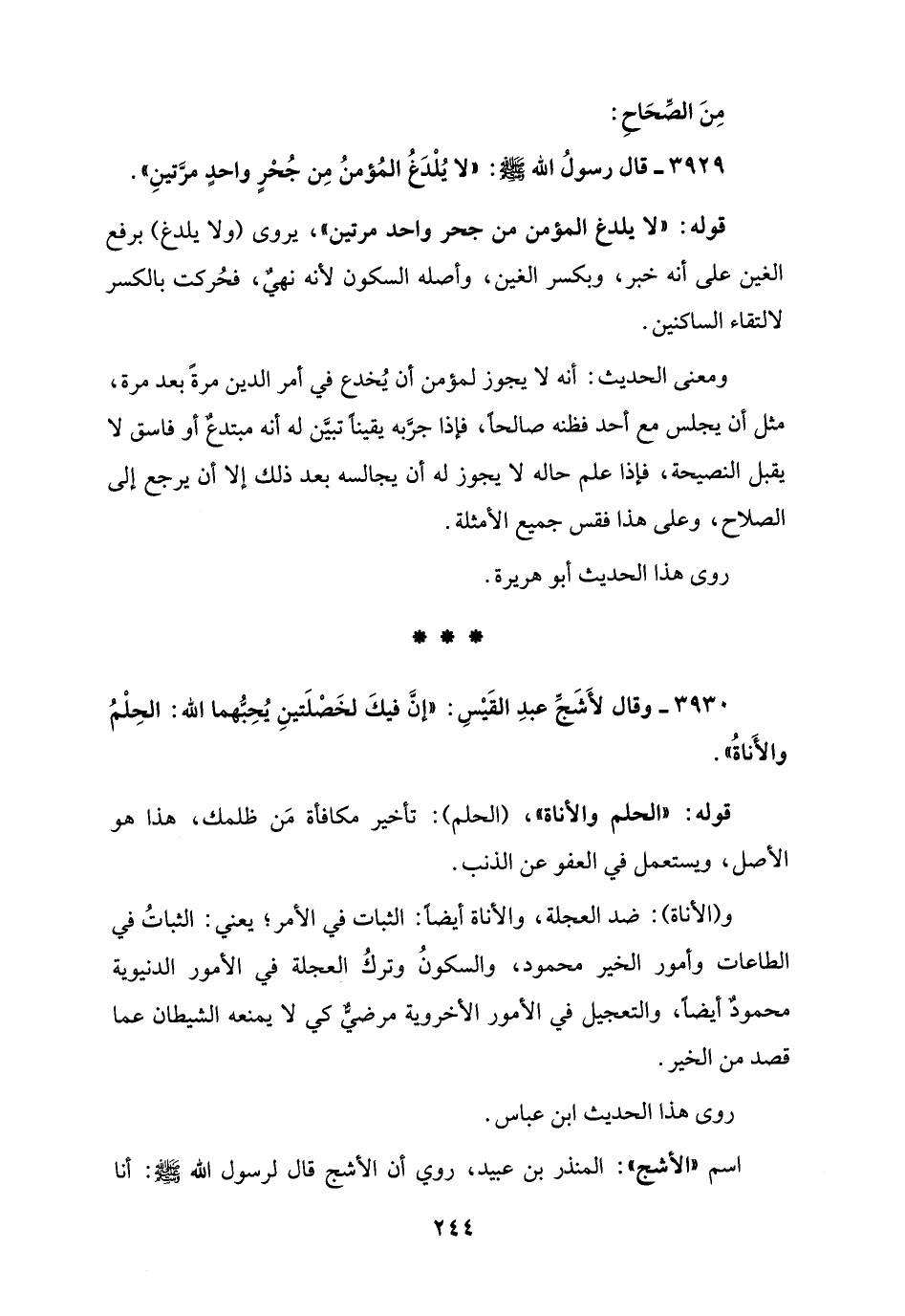 3930 - وقال لأَشَجِّ عبدِ القَيْسِ: "إنَّ فيكَ لخَصْلَتينِ يُحِبُّهما الله: الحِلْمُ والأَناةُ".