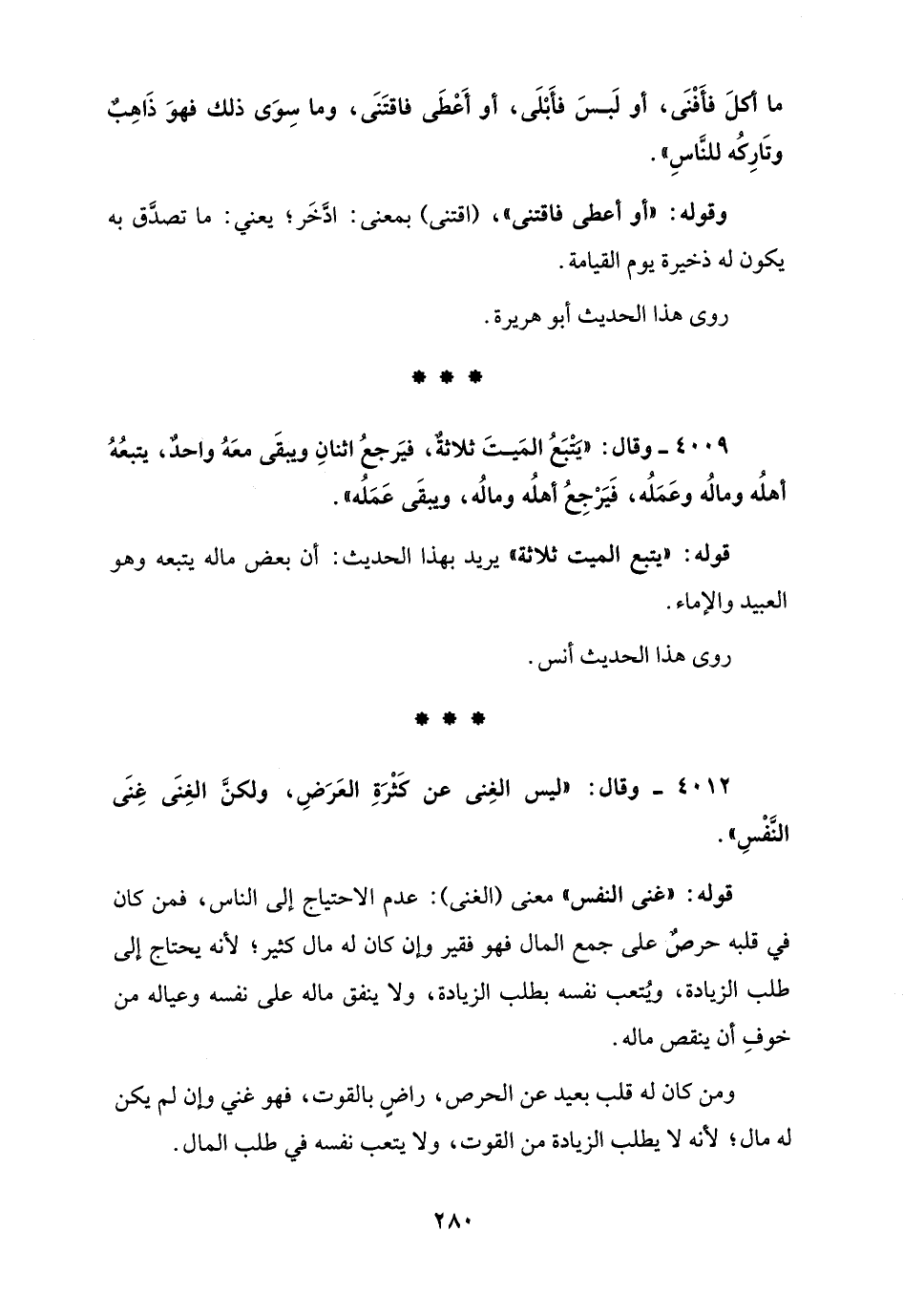 4012 - وقال: "ليس الغِنى عن كَثْرَةِ العَرَضِ، ولكنَّ الغِنَى غِنَى النَّفْسِ".