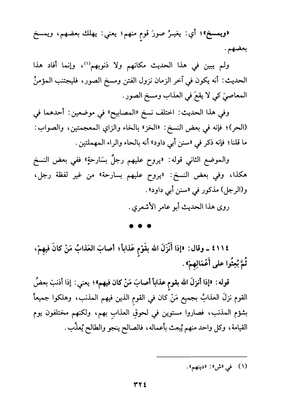 4114 - وقال: "إذا أَنْزَلَ الله بقَوْمٍ عَذابًا؛ أصابَ العَذابُ مَنْ كانَ فيهِمْ، ثُمَّ بُعِثُوا على أَعْمَالِهِمْ".