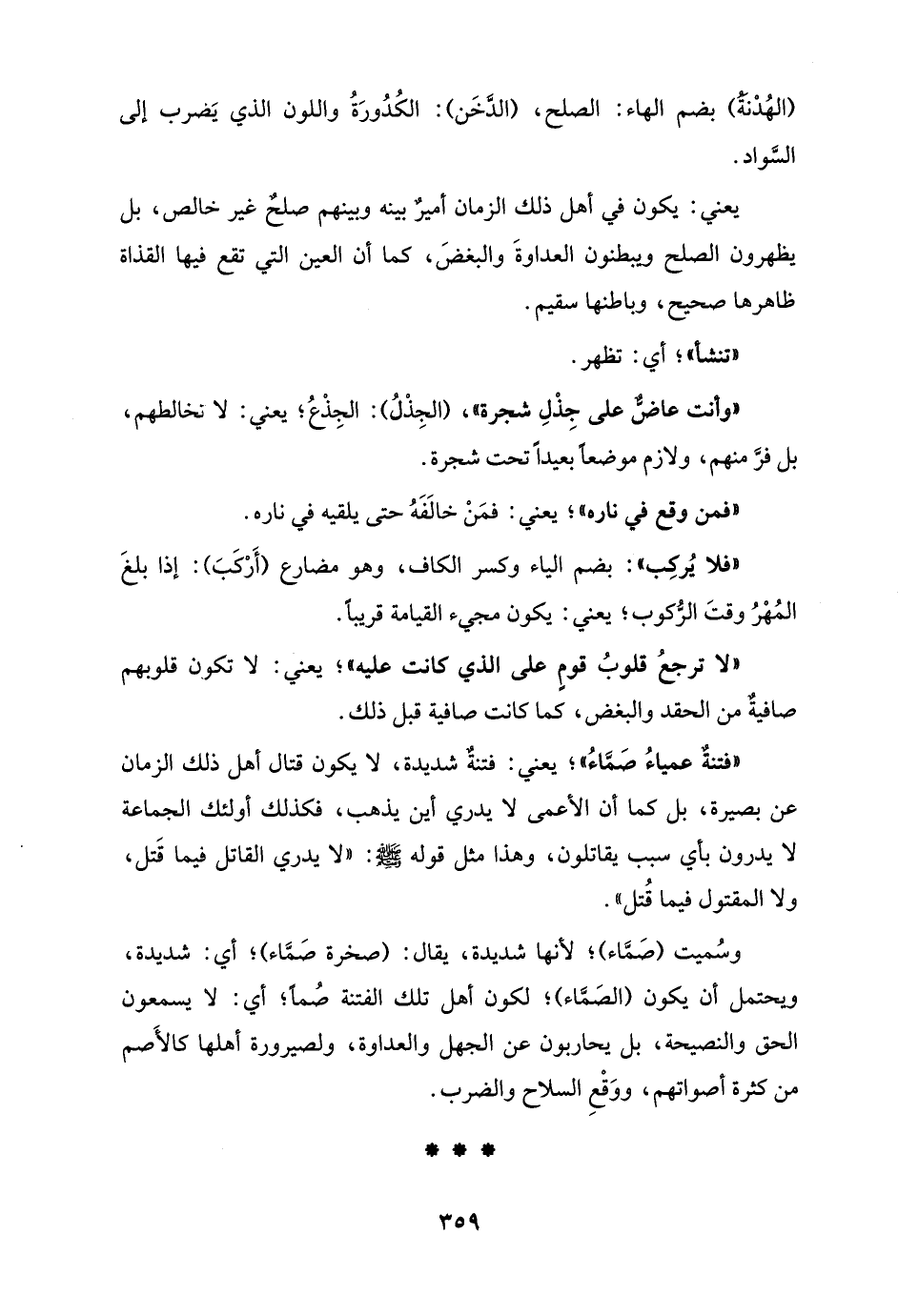 (الهُدْنَةُ) بضم الهاء: الصلح، (الدَّخَن): الكُدُورَةُ واللون الذي يَضرب إلى السَّواد.