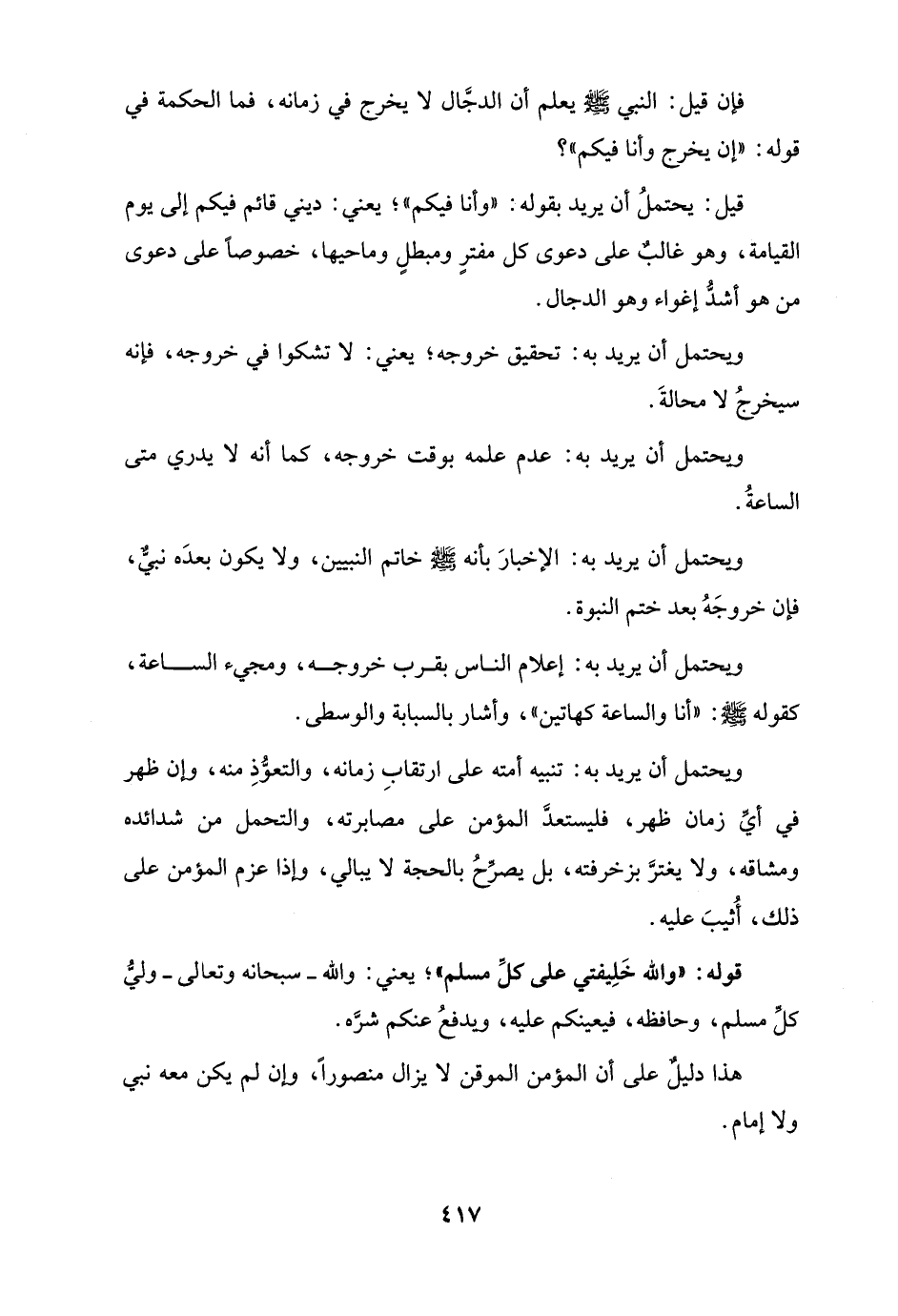 ويحتمل أن يريد به: الإخبارَ بأنه - صلى الله عليه وسلم - خاتم النبيين، ولا يكون بعدَه نبيٌّ، فإن خروجَهُ بعد ختم النبوة.