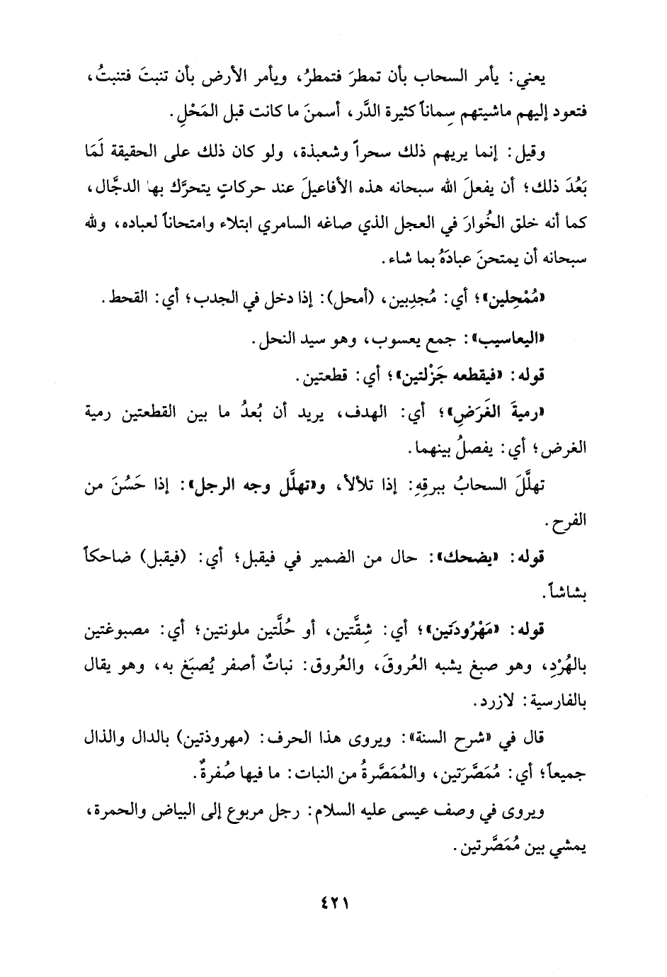 قال في "شرح السنة": ويروى هذا الحرف: (مهروذتين) بالدال والذال جميعًا؛ أي: مُمَصَّرَتين، والمُمَصَّرةُ من النبات: ما فيها صُفرةٌ.