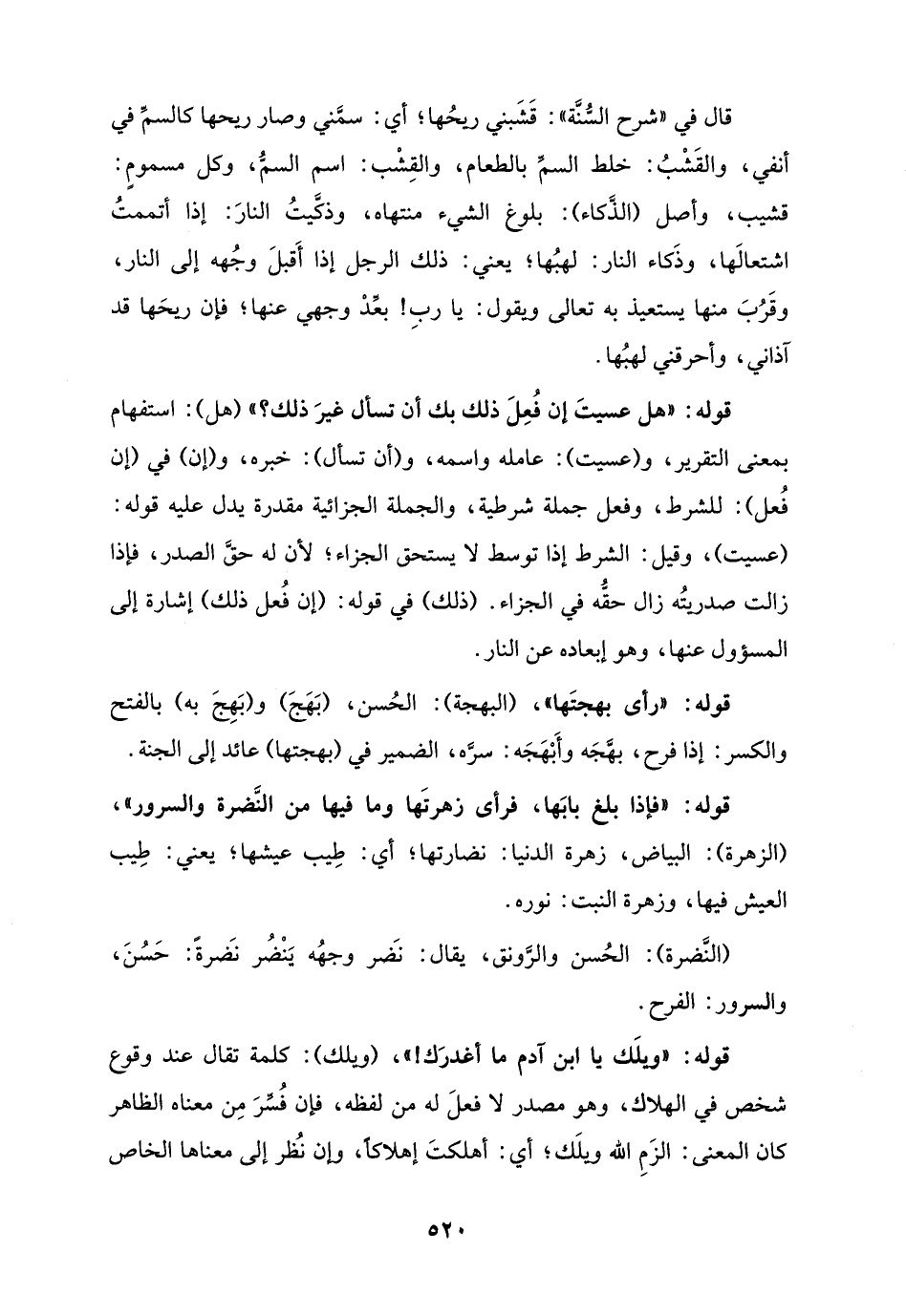 قال في "شرح السُّنَّة": قَشَبني ريحُها؛ أي: سمَّني وصار ريحها كالسمِّ في أنفي، والقَشْبُ: خلط السمِّ بالطعام، والقِشْب: اسم السمُّ، وكل مسمومٍ: قشيب، وأصل (الذَّكاء): بلوغ الشيء منتهاه، وذكَّيتُ النارَ: إذا أتممتُ اشتعالَها، وذَكاء النار: لهبُها؛ يعني: ذلك الرجل إذا أَقبلَ وجهه إلى النار، وقَرُبَ منها يستعيذ به تعالى ويقول: يا ربِ! بعِّدْ وجهي عنها؛ فإن ريحَها قد آذاني، وأحرقني لهبُها.
