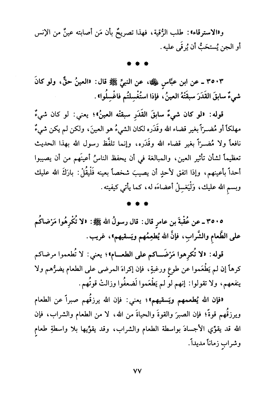 3505 - عن عُقْبةَ بن عامرٍ قال: قال رسولُ الله - صلى الله عليه وسلم -: "لا تُكْرِهُوا مَرْضاكُم على الطَّعامِ والشَّرابِ، فإنَّ الله يُطعِمُهم ويَسقيهم"، غريب.