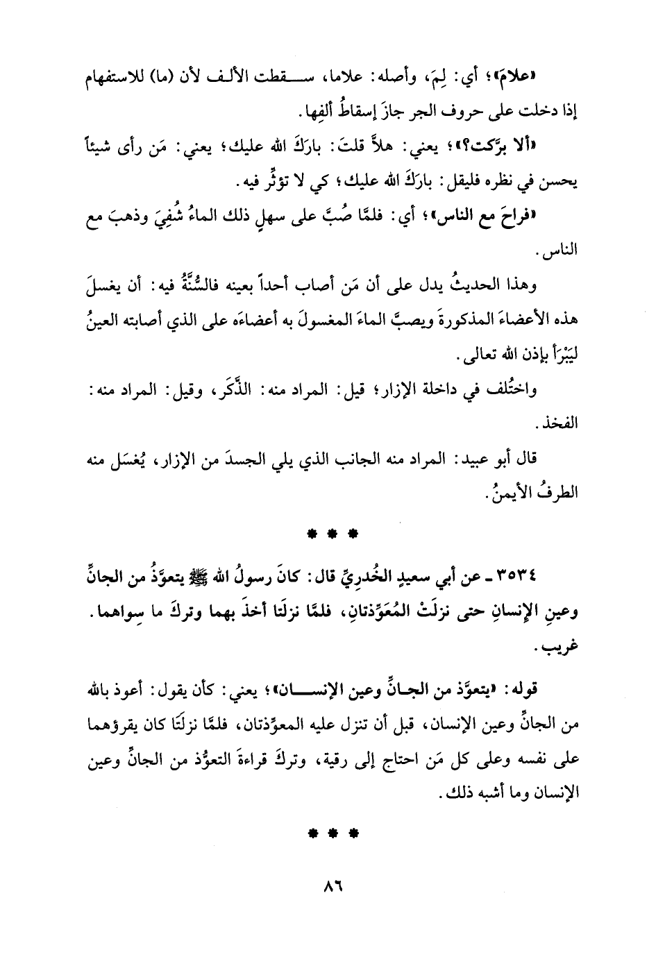 "ألا برَّكت؟ "؛ يعني: هلَّا قلتَ: بارَكَ الله عليك؛ يعني: مَن رأى شيئًا يحسن في نظره فليقل: بارَكَ الله عليك؛ كي لا تؤثَّر فيه.
