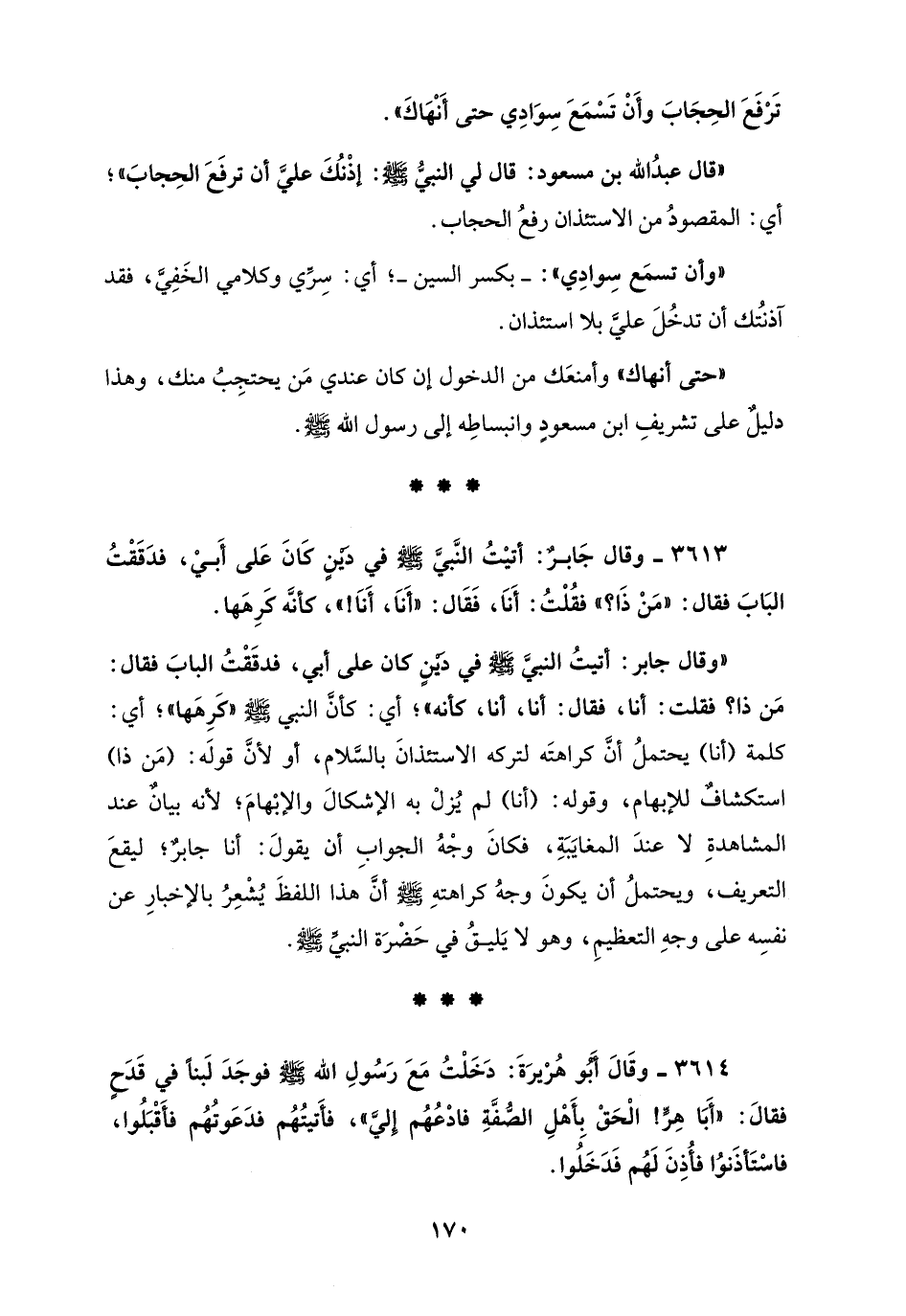 3613 - وقال جَابرٌ: أتيْتُ النَّبيَّ - صَلَّى الله عليه وسلم - في دينٍ كَانَ عَلى أَبيْ، فدَقَقْتُ البَابَ فقال: "مَنْ ذَا؟ " فقُلْتُ: أَنَا، فَقَال: "أَنَا، أَنَا! "، كأنَّه كَرِهَها.