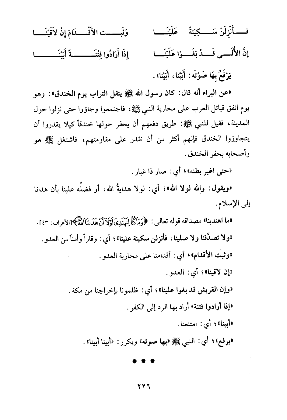 فأنْزِلَنْ سَكِيَنة عَلَيْنَا. . . وَثَبت الأَقْدَامَ إنْ لاَقَيْنَا