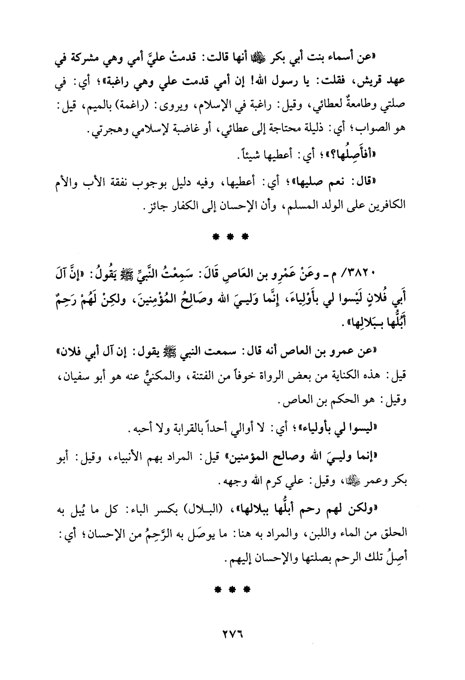 3820 / -م - وعَنْ عَمْرِو بن العاص قَالَ: سَمِعْتُ النَّبيَّ - صلى الله عليه وسلم - يَقُولُ: "إنَّ آلَ أَبي فُلانٍ لَيْسوا لي بأَوْلِياءَ، إِنَّما وَلييَ الله وصالح المُؤْمِنينَ، ولكِنْ لَهُمْ رَحِمٌ أَبُلُّها ببَلالِها".