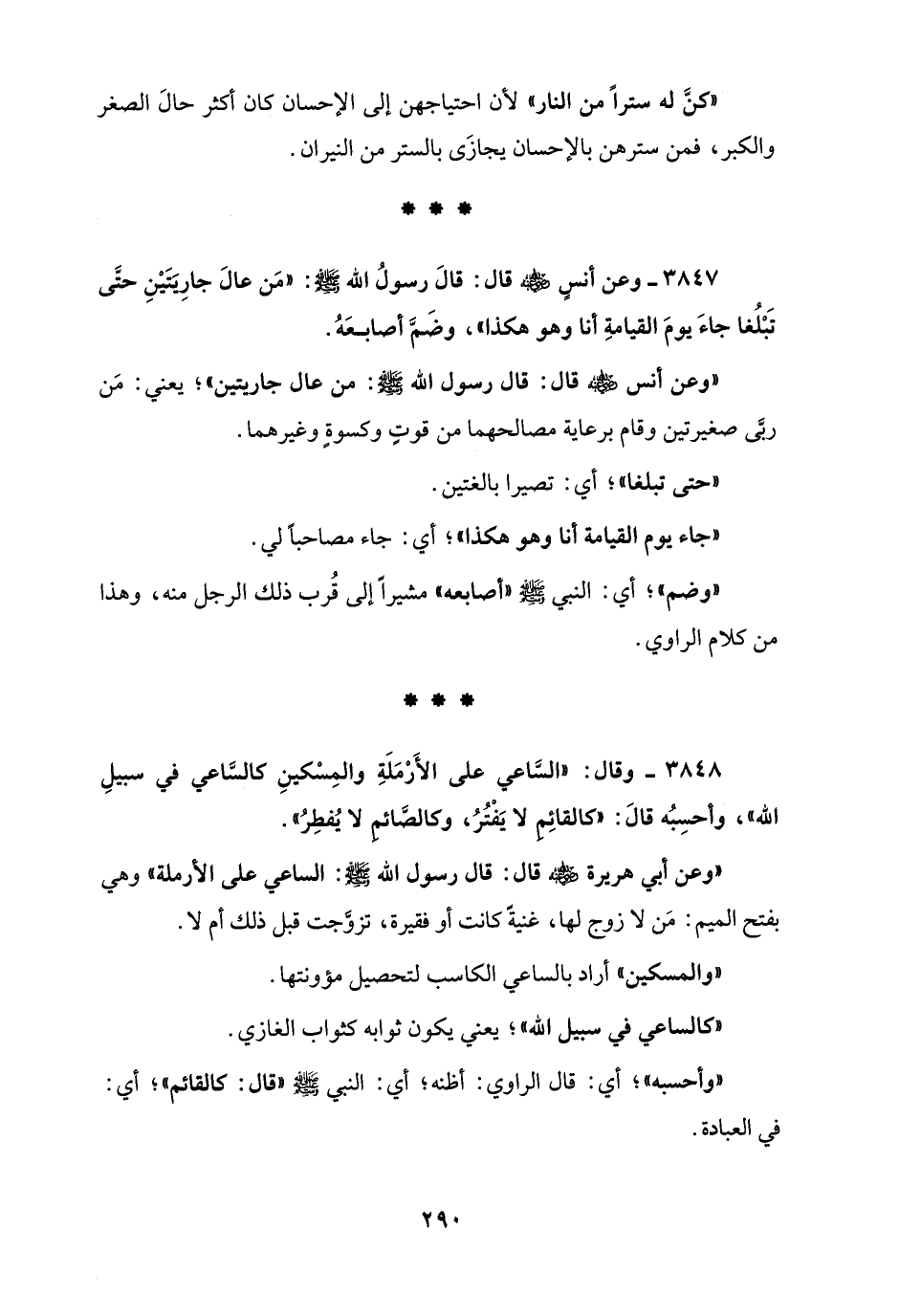 3847 - وعن أنسٍ - رضي الله عنه - قال: قَالَ رسولُ الله - صلى الله عليه وسلم -: "مَن عالَ جارِيَتَيْنِ حتَّى تَبْلُغا جاءَ يومَ القيامةِ أنا وهو هكذا"، وضَمَّ أصابعَهُ.