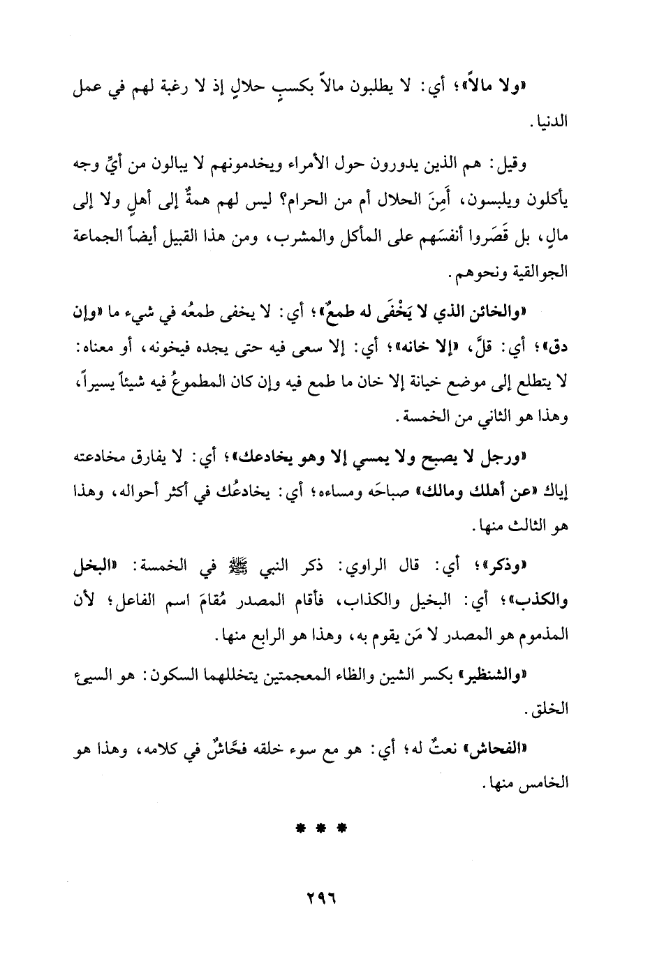 وقيل: هم الذين يدورون حول الأمراء ويخدمونهم لا يبالون من أيِّ وجه يأكلون ويلبسون، أَمِنَ الحلال أم من الحرام؟ ليس لهم همةٌ إلى أهلٍ ولا إلى مالٍ، بل قَصَروا أنفسَهم على المأكل والمشرب، ومن هذا القبيل أيضًا الجماعة الجوالقية ونحوهم.