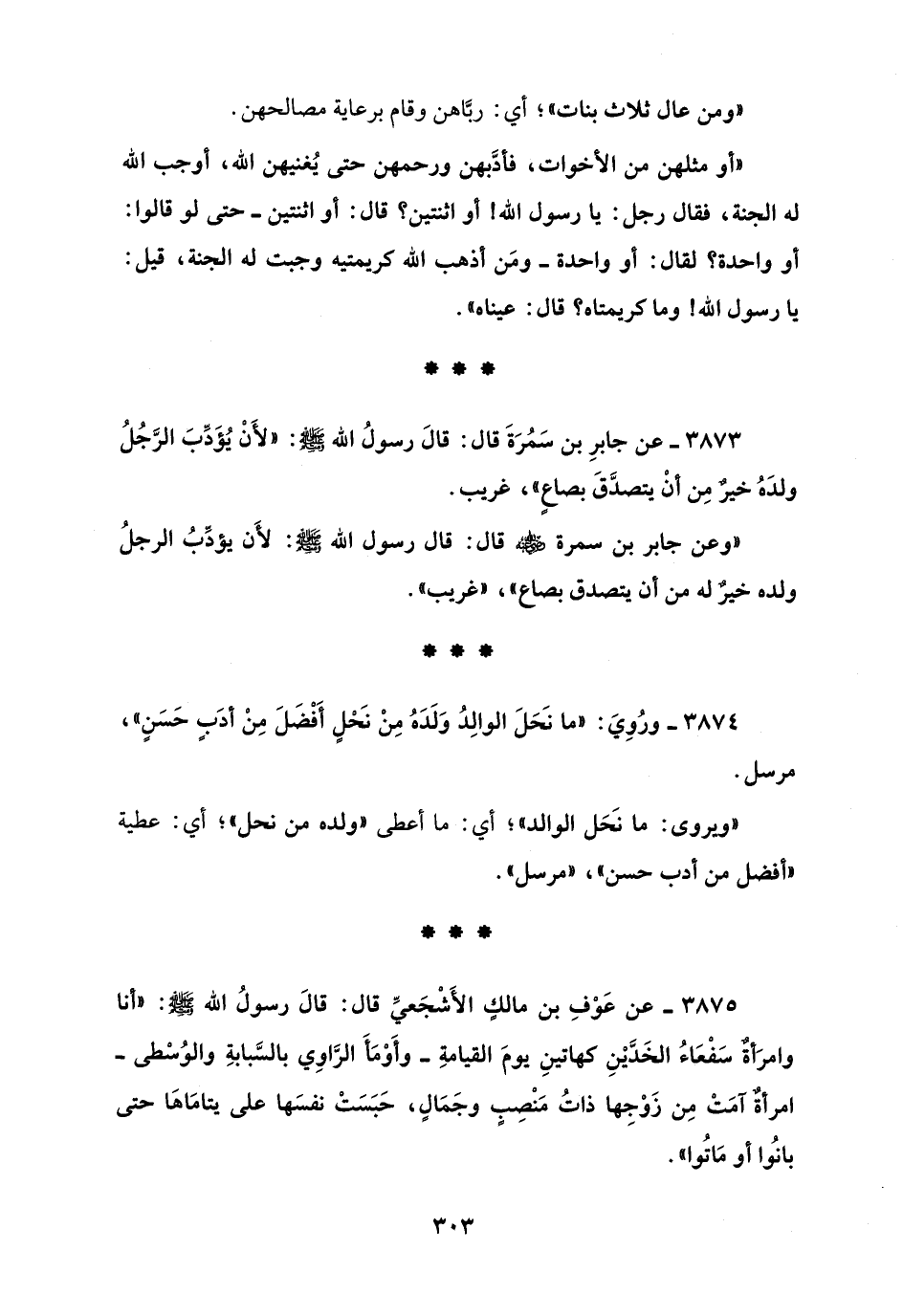3874 - ورُوِيَ: "ما نَحَلَ الوالِدُ وَلَدَهُ مِنْ نَحْلٍ أَفْضَلَ مِنْ أدَبٍ حَسَنٍ"، مرسل.