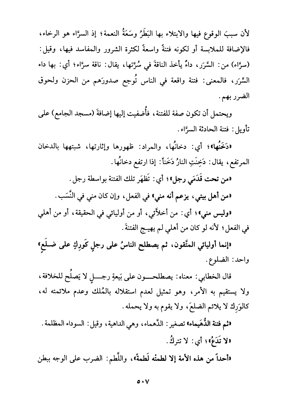"ثم فتنة الدُّهَيماء" تصغير: الدَّهماء، وهي الداهية، وقيل: السوداء المظلمة.