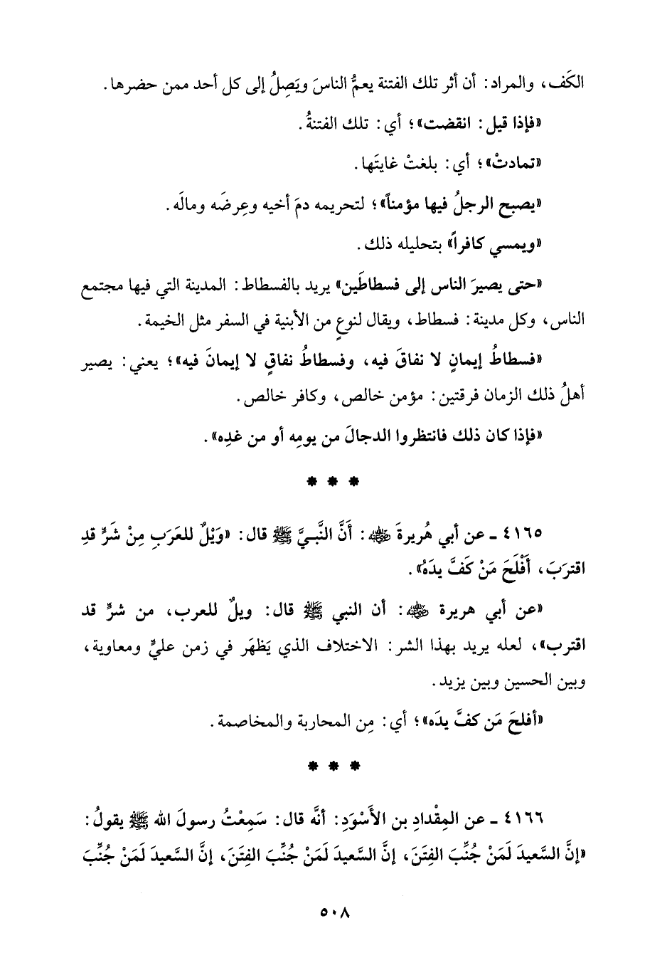 4166 - عن المِقْدادِ بن الأَسْوَدِ: أنَّه قال: سَمِعْتُ رسولَ الله - صلى الله عليه وسلم - يقولُ: "إنَّ السَّعيدَ لَمَنْ جُنِّبَ الفِتَنَ، إنَّ السَّعيدَ لَمَنْ جُنِّبَ الفِتَنَ، إنَّ السَّعيدَ لَمَنْ جُنِّبَ