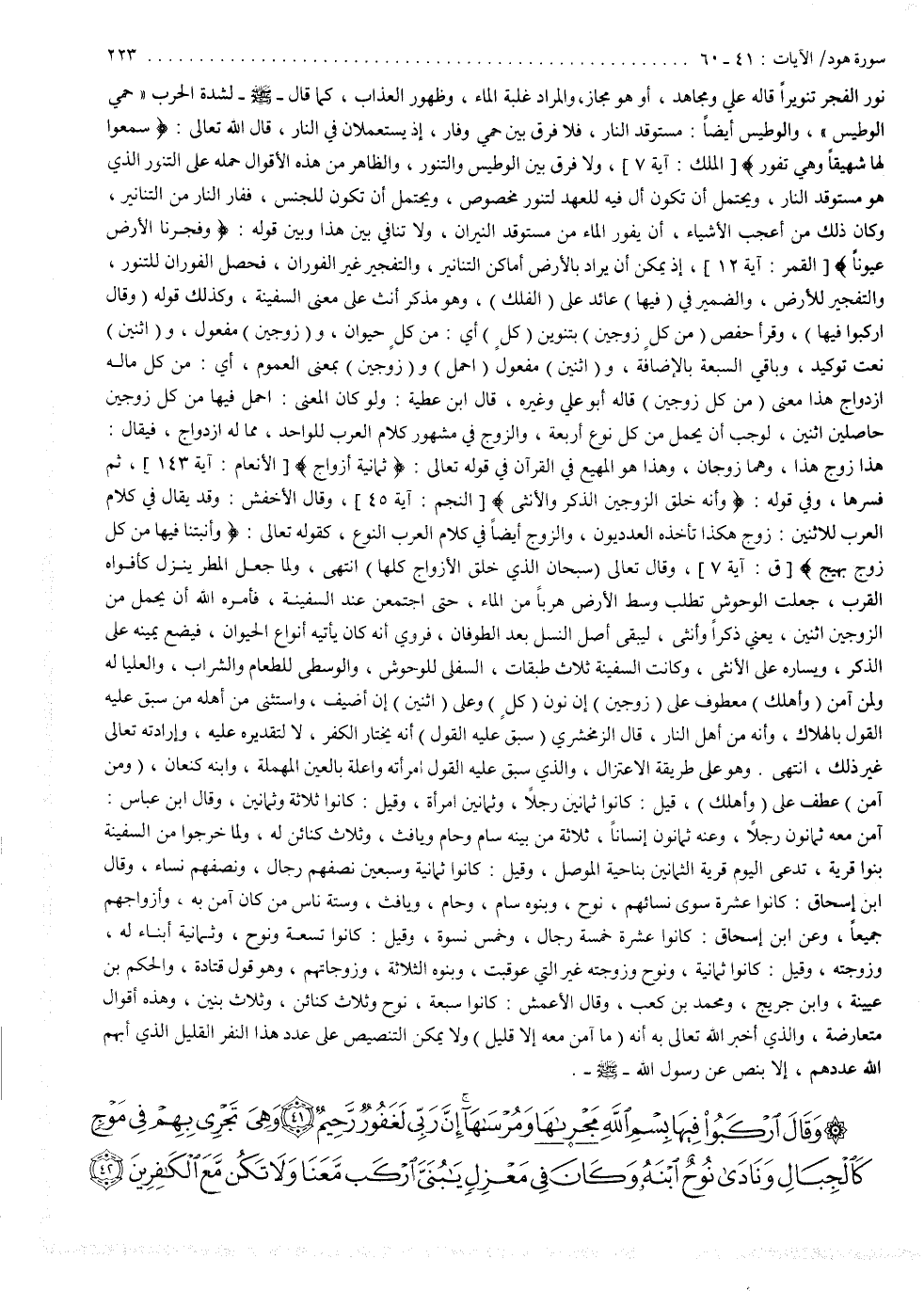 2 ( ) وَقَالَ ارْكَبُواْ فِيهَا بِسْمِ اللَّهِ مَجْرَاهَا وَمُرْسَاهَا إِنَّ رَبِّى لَغَفُورٌ رَّحِيمٌ وَهِىَ تَجْرِى بِهِمْ فِى مَوْجٍ كَالْجِبَالِ وَنَادَى نُوحٌ ابْنَهُ وَكَانَ فِى مَعْزِلٍ يابُنَىَّ ارْكَبَ مَّعَنَا وَلاَ تَكُن مَّعَ الْكَافِرِينَ