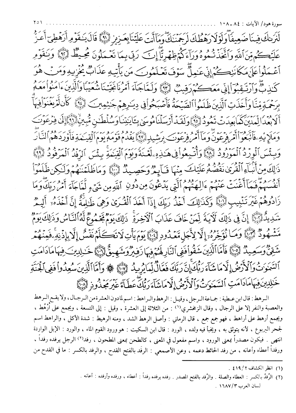 الرهط : قال ابن عطية جماعة الرجل ، وقيل : الرهط والراهط اسم لما دون العشرة من الرجال ، ولا يقع الرهط والعصبة والنفر إلا على الرجال . وقال الزمخشري : من الثلاثة إلى العشرة . وقيل : إلى التسعة ، ويجمع على أرهط ، ويجمع أرهط على أراهط ، فهو جمع جمع . قال الرماني : وأصل الرهط الشد ، ومنه الرهيط شدة الأكل ، والراهط اسم لجحر اليربوع لأنه يتوثق به ويخبأ فيه ولده .