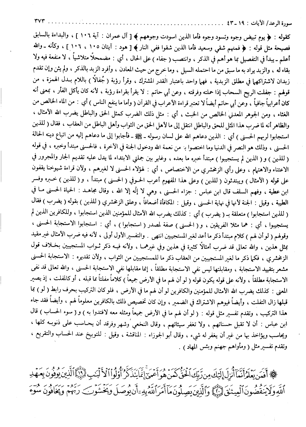 ( ) أَفَمَن يَعْلَمُ أَنَّمَآ أُنزِلَ إِلَيْكَ مِن رَبِّكَ الْحَقُّ كَمَنْ هُوَ أَعْمَى إِنَّمَا يَتَذَكَّرُ أُوْلُواْ الأَلْبَابِ الَّذِينَ يُوفُونَ بِعَهْدِ اللَّهِ وَلاَ يِنقُضُونَ الْمِيثَاقَ وَالَّذِينَ يَصِلُونَ مَآ أَمَرَ اللَّهُ بِهِ أَن يُوصَلَ وَيَخْشَوْنَ رَبَّهُمْ وَيَخَافُونَ سُوء