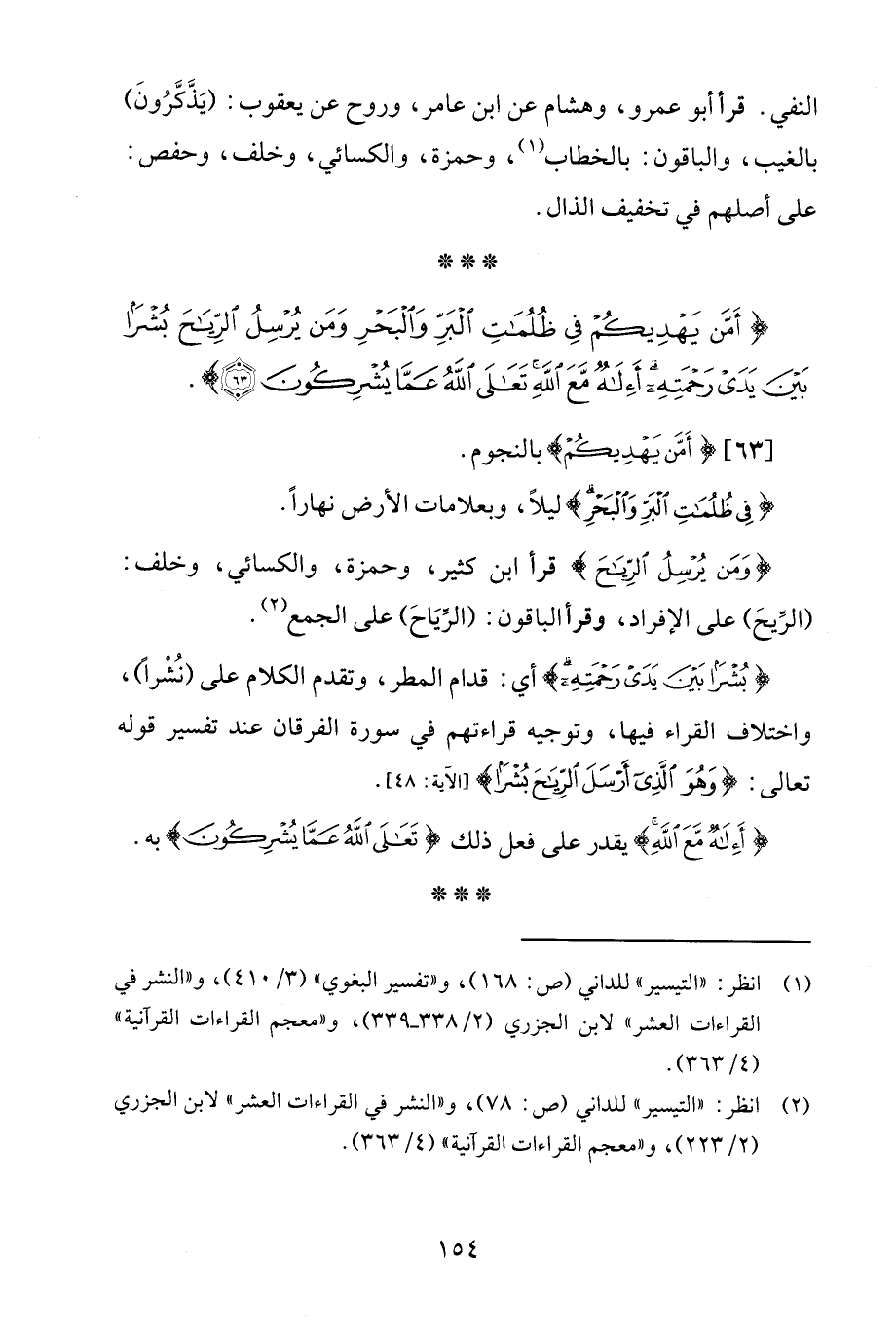 (¬1) انظر: "التيسير" للداني (ص: 168)، و"تفسير البغوي" (3/ 410)، و"النشر في القراءات العشر" لابن الجزري (2/ 338 - 339)، و"معجم القراءات القرآنية" (4/ 363).