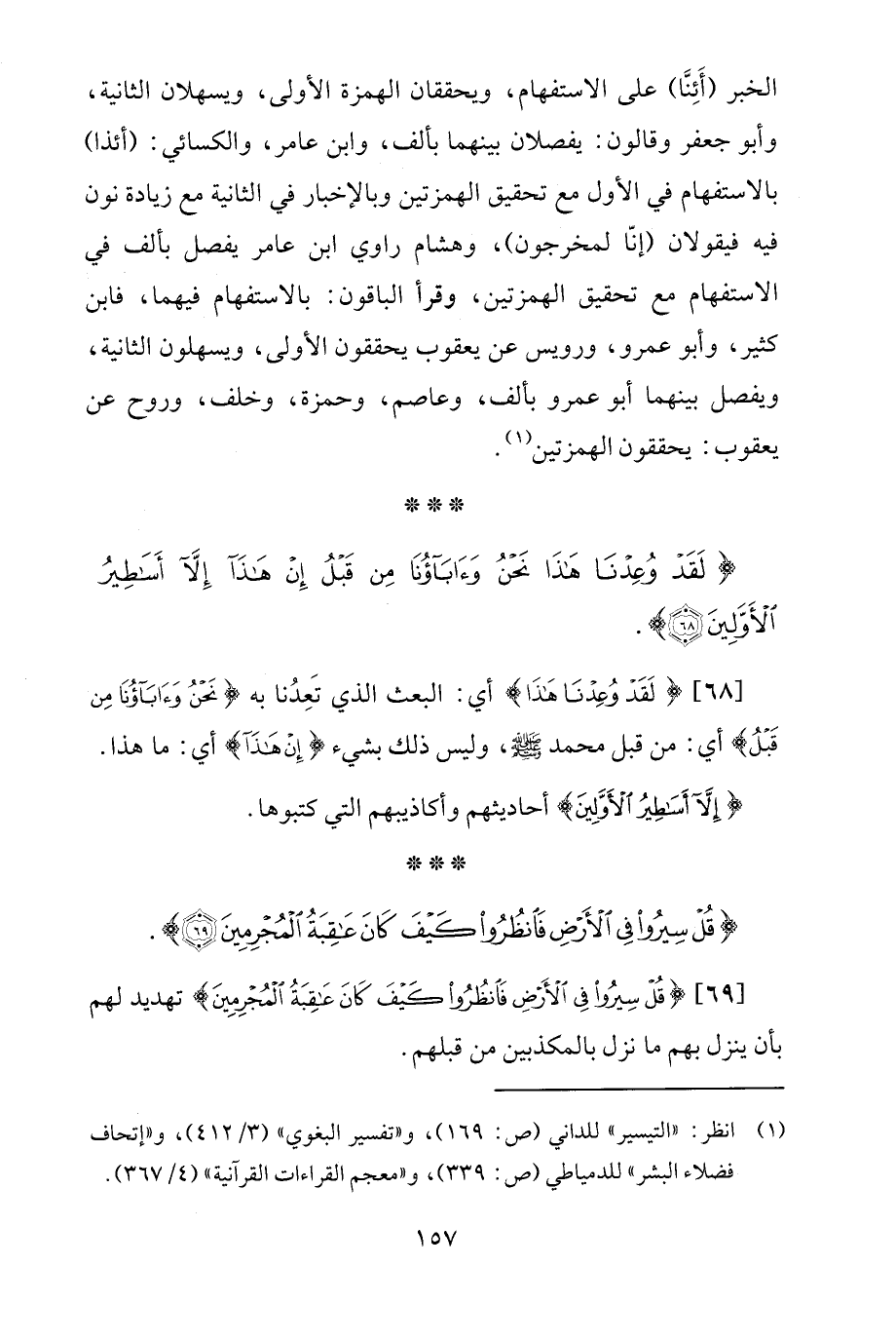[69] {قُلْ سِيرُوا فِي الْأَرْضِ فَانْظُرُوا كَيْفَ كَانَ عَاقِبَةُ الْمُجْرِمِينَ} تهديد لهم بأن ينزل بهم ما نزل بالمكذبين من قبلهم.