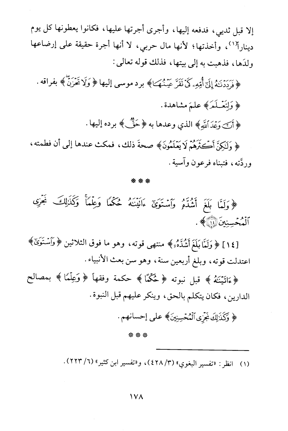 {وَلَمَّا بَلَغَ أَشُدَّهُ وَاسْتَوَى آتَيْنَاهُ حُكْمًا وَعِلْمًا وَكَذَلِكَ نَجْزِي الْمُحْسِنِينَ (14)}.