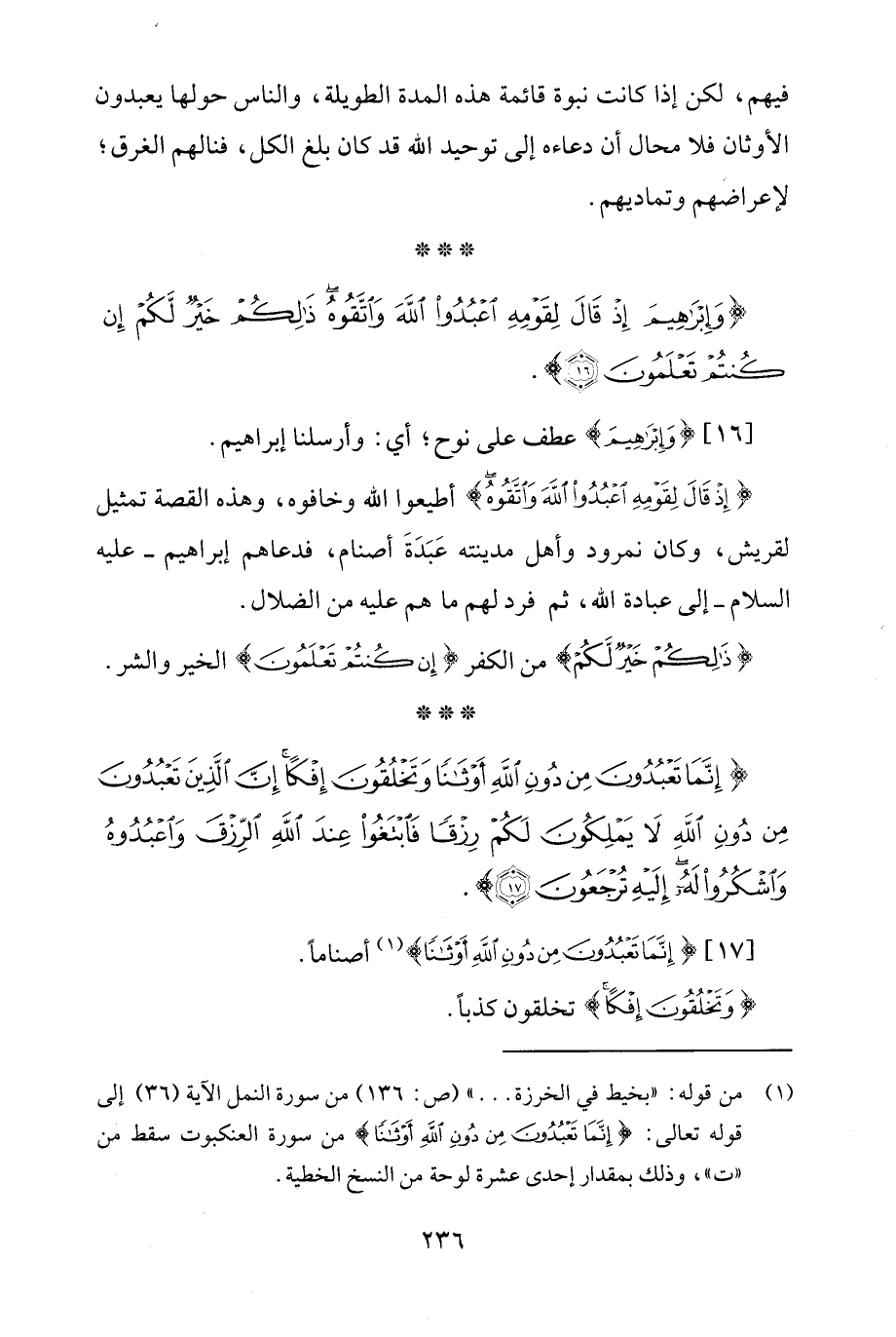{إِنَّمَا تَعْبُدُونَ مِنْ دُونِ اللَّهِ أَوْثَانًا وَتَخْلُقُونَ إِفْكًا إِنَّ الَّذِينَ تَعْبُدُونَ مِنْ دُونِ اللَّهِ لَا يَمْلِكُونَ لَكُمْ رِزْقًا فَابْتَغُوا عِنْدَ اللَّهِ الرِّزْقَ وَاعْبُدُوهُ وَاشْكُرُوا لَهُ إِلَيْهِ تُرْجَعُونَ (17)}.