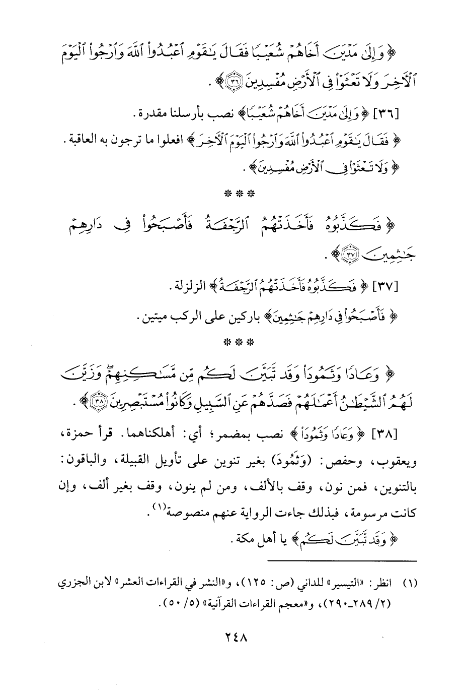 [36] {وَإِلَى مَدْيَنَ أَخَاهُمْ شُعَيْبًا} نصب بأرسلنا مقدرة.