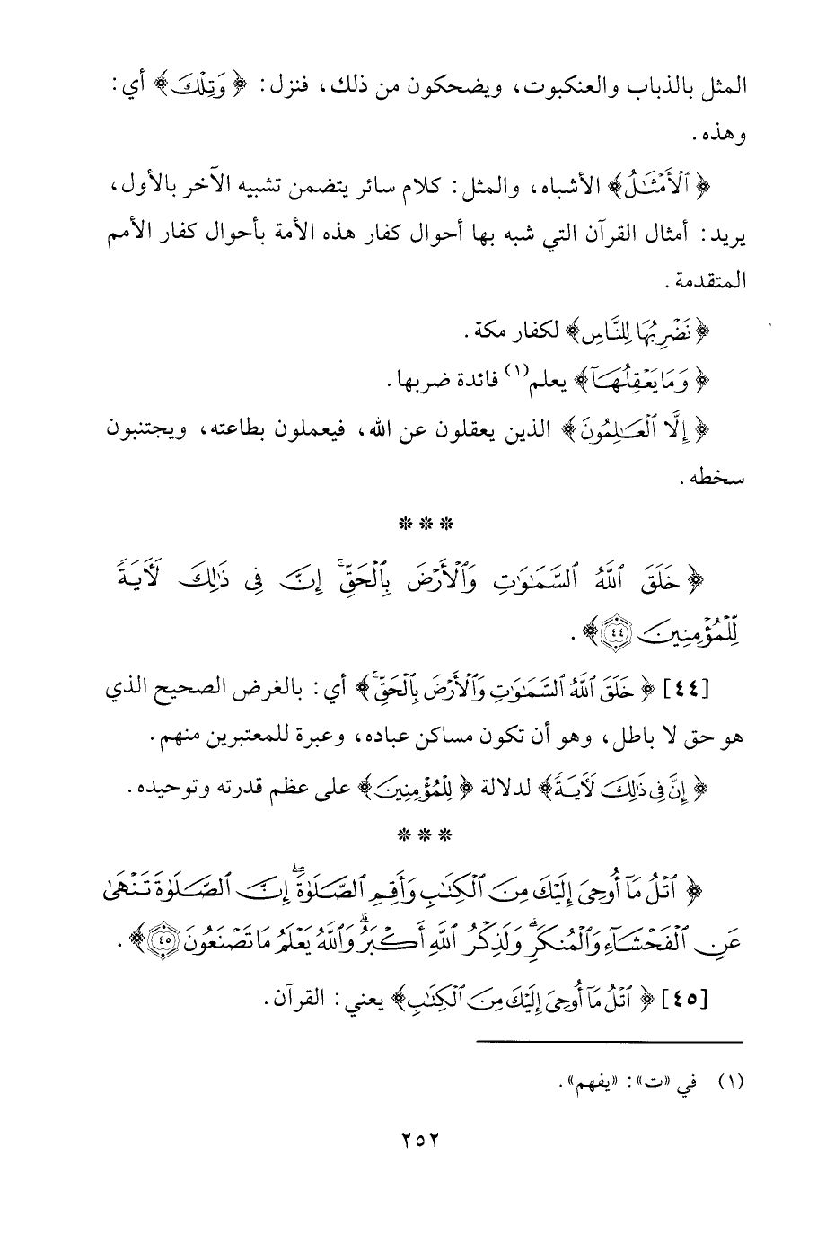 {خَلَقَ اللَّهُ السَّمَاوَاتِ وَالْأَرْضَ بِالْحَقِّ إِنَّ فِي ذَلِكَ لَآيَةً لِلْمُؤْمِنِينَ (44)}.
