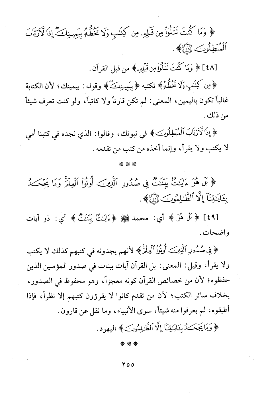 [48] {وَمَا كُنْتَ تَتْلُو مِنْ قَبْلِهِ} من قبل القرآن.