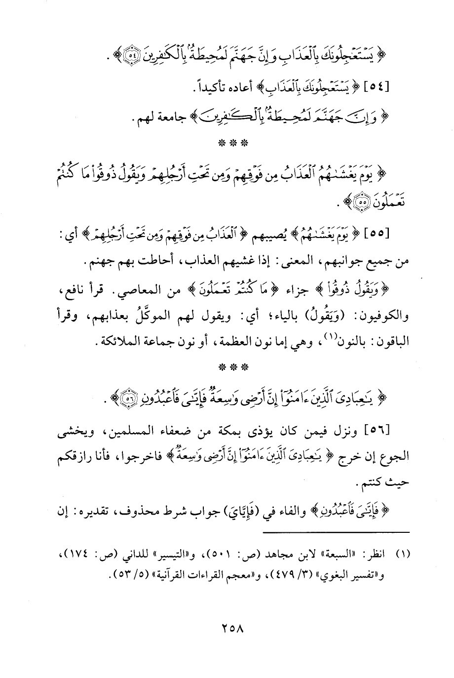 (¬1) انظر: "السبعة" لابن مجاهد (ص: 501)، و"التيسير" للداني (ص: 174)، و"تفسير البغوي" (3/ 479)، و"معجم القراءات القرآنية" (5/ 53).